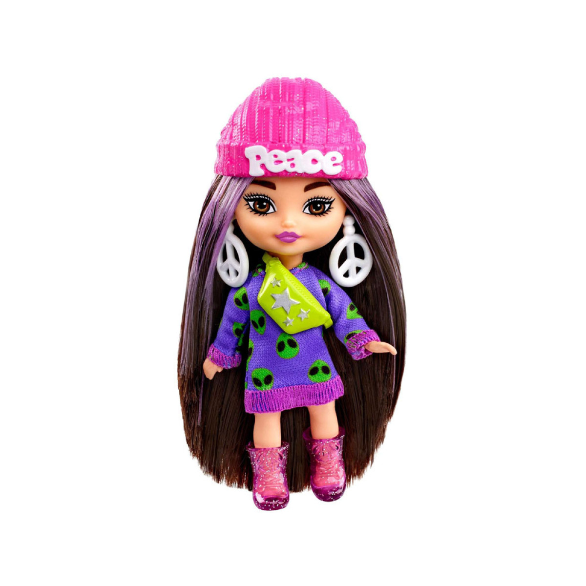 Sērija Extra Mini Minis piedāvā miniatūras Barbie lelles, kas izceļas ar unikālu un drosmīgu stilu, pilnu ar krāsām, rakstiem un fantāzijas aksesuāriem.