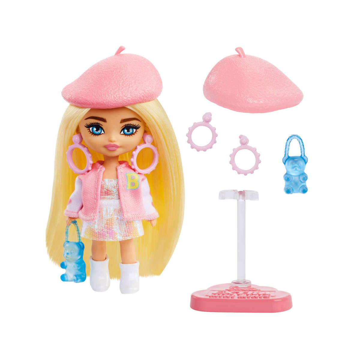 Lelle Barbie Extra Mini Minis ir mini Barbie lelles, kas izceļas ar unikālu un drosmīgu stilu, pilnu ar krāsām, rakstiem un fantāzijas papildinājumiem. Katru lelli raksturo modes izjūta, un spēle ar to nekad nebūs garlaicīga. Barbie Mini Minis ir lieliski piemērota arī kā 'lielās' Barbie jaunākā māsa vai meita.