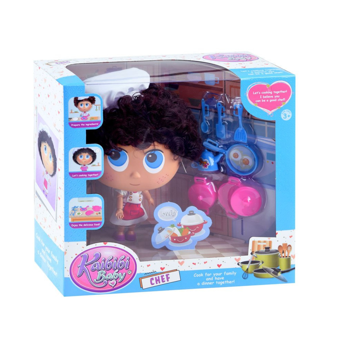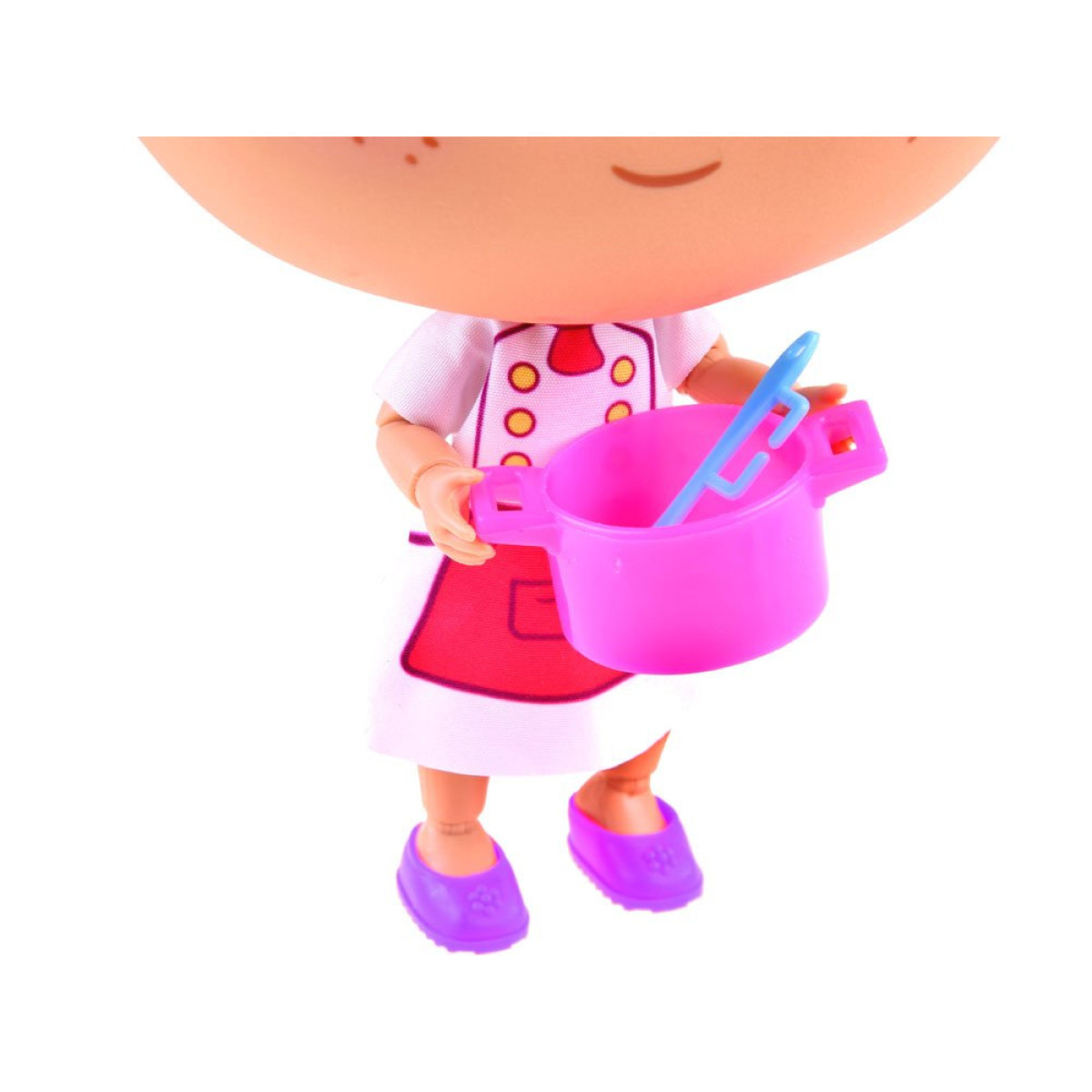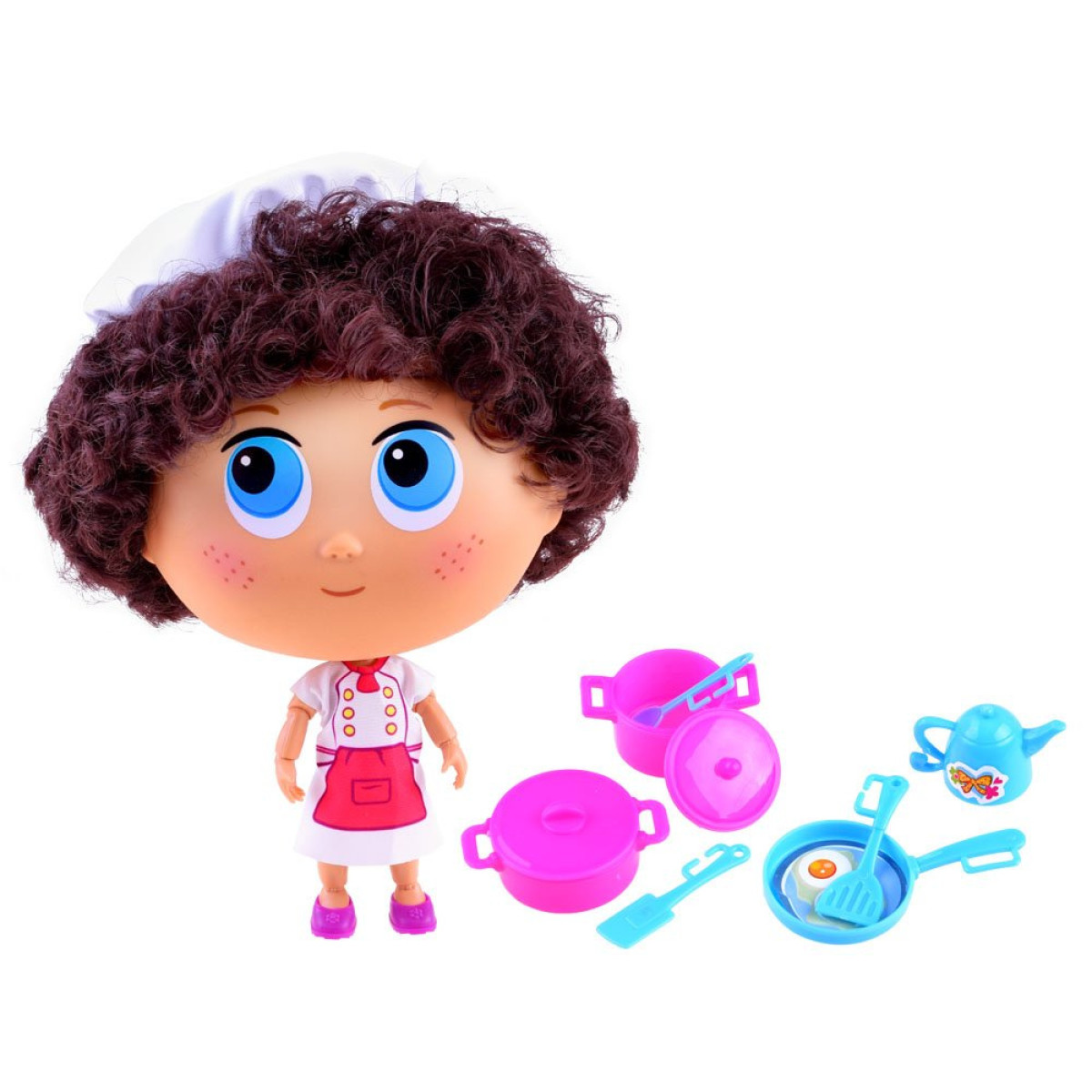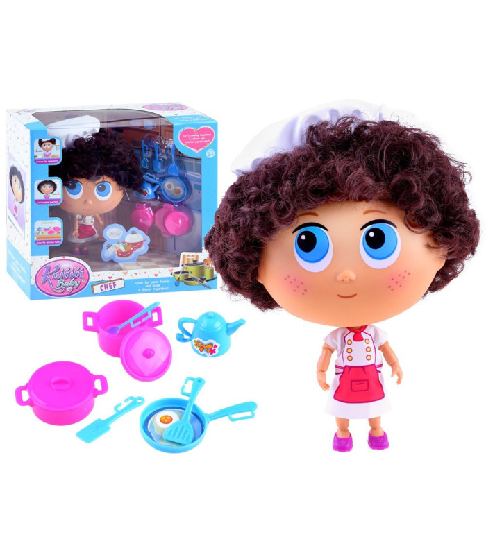 Unikāla lelle pavāra tērpā ir lielisks spēļu risinājums. Lelle izgatavota no plastmasas ar kuplu, krāšņu galvu. Visas ekstremitātes ir kustīgas, locās locītavās, plaukstas locītavās, elkoņos, ceļos, potītēs. Galva rotē par 360 grādiem. Apģērbta pavāra priekšautā, rozā kurpītēs un pavāra cepurē. Uz sejas uzkrāsotas lielas acis, burvīgi vasaras raibumi un smaids. Komplektā ietilpst katli, pannas un virtuves piederumi. Ar šādu lelli katra spēle būs tīrs prieks.