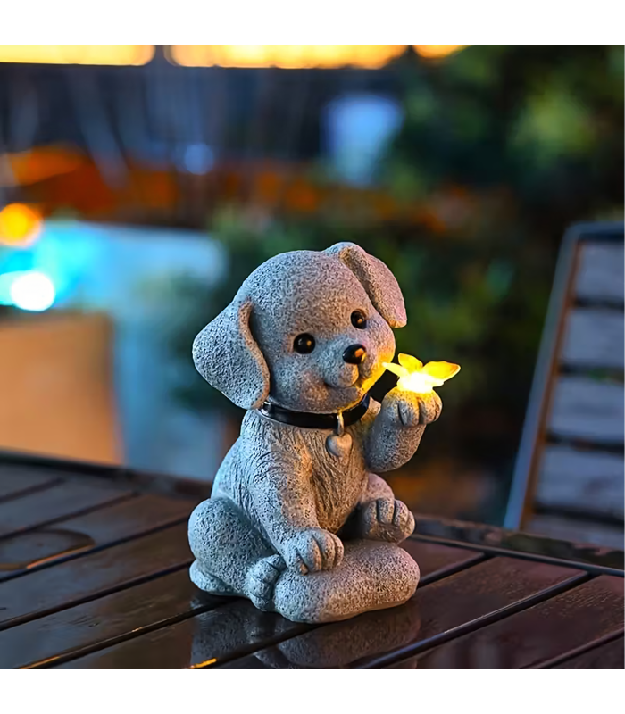 Saules Lampiņa ar LED Gaismu un Dekoratīvu Suņu un Tauriņa Dizainu