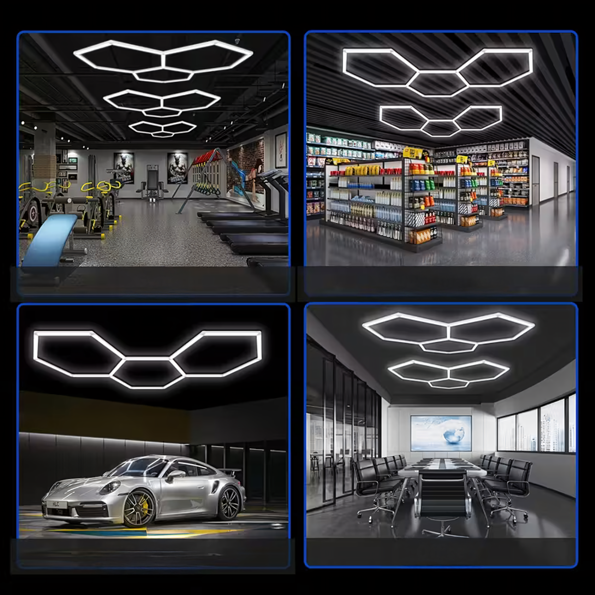 LED Hexagon Panelis 247x98 cm 125W 6500K – Apgaismojums Garāžai, Darbnīcai un Mājai