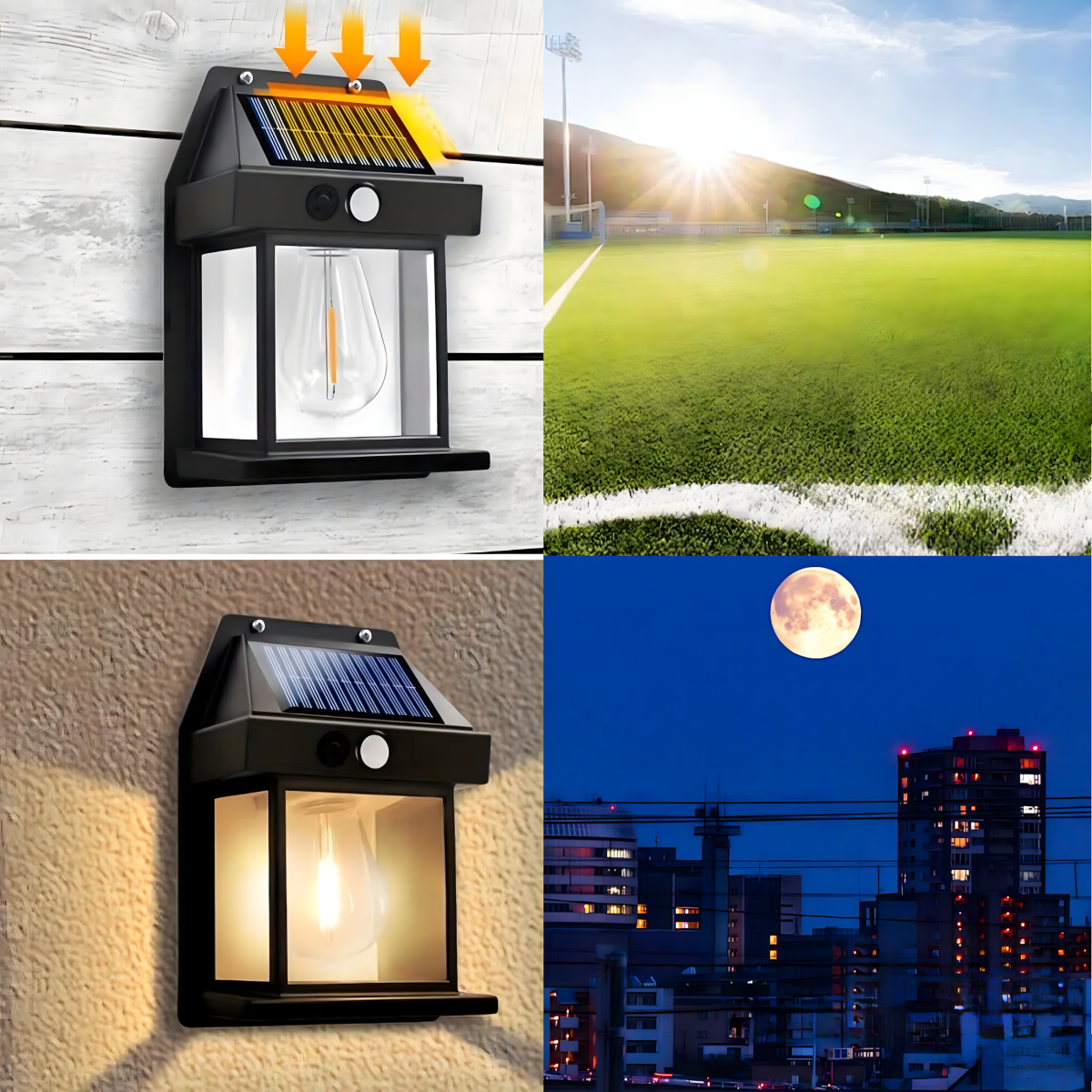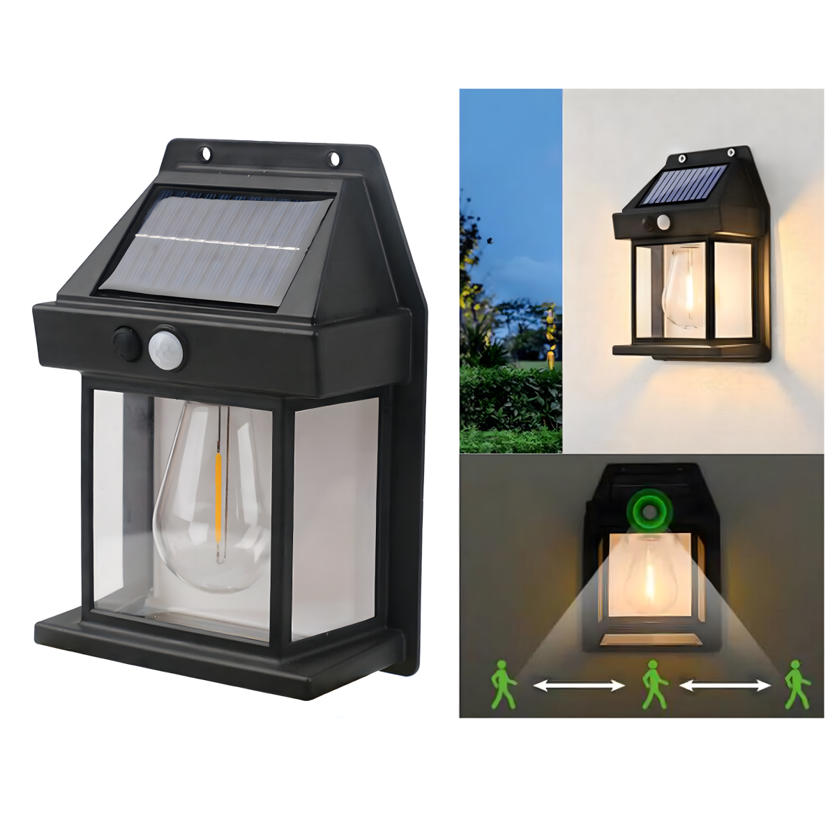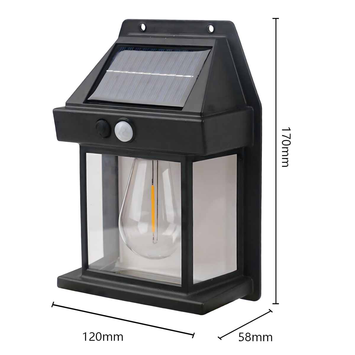 - Iebūvēts kustības un krēslas sensors - lampa automātiski ieslēdzas pēc krēslas iestāšanās