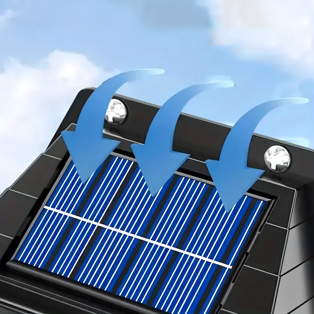 - Monokristālisks saules panelis, kas uzlādējas arī mākoņainās dienās