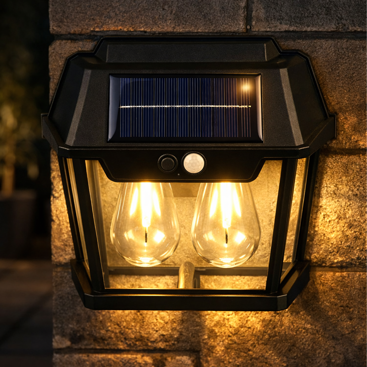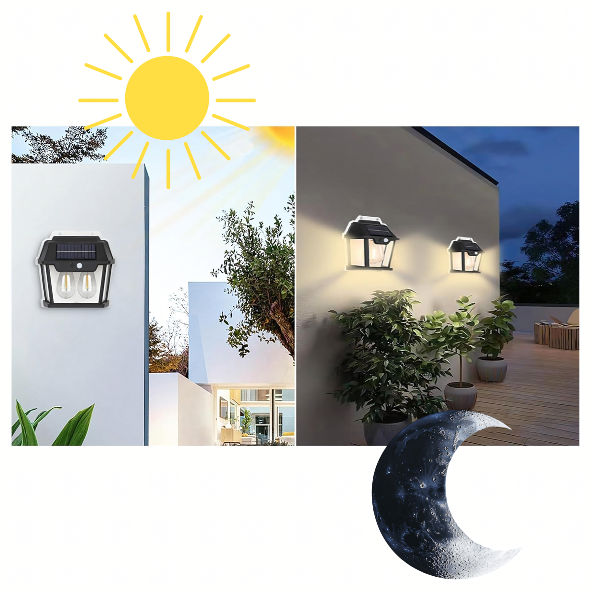 Saules LED dubultā sienas lampa ir ideāli piemērota dārza apgaismošanai un fasādes dekorēšanai. Tā ir aprīkota ar kustības sensoru, kas nodrošina enerģijas taupīšanu un drošību.