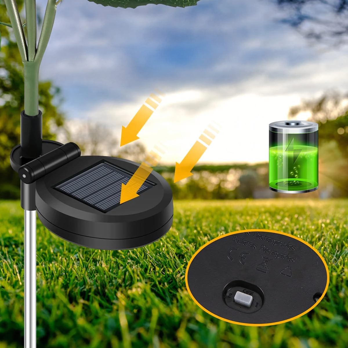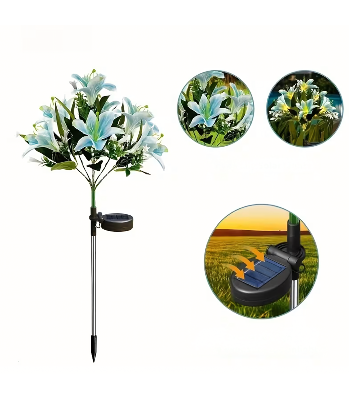 Šī saules dārza lampa ir eleganta un dabas iedvesmota dekorācija, kas piešķirs jūsu dārzam unikālu šarmu. Izgatavota kā liliju zieds, tā ir ideāla izvēle tiem, kas vēlas pievienot dārzam krāsu un gaismu.