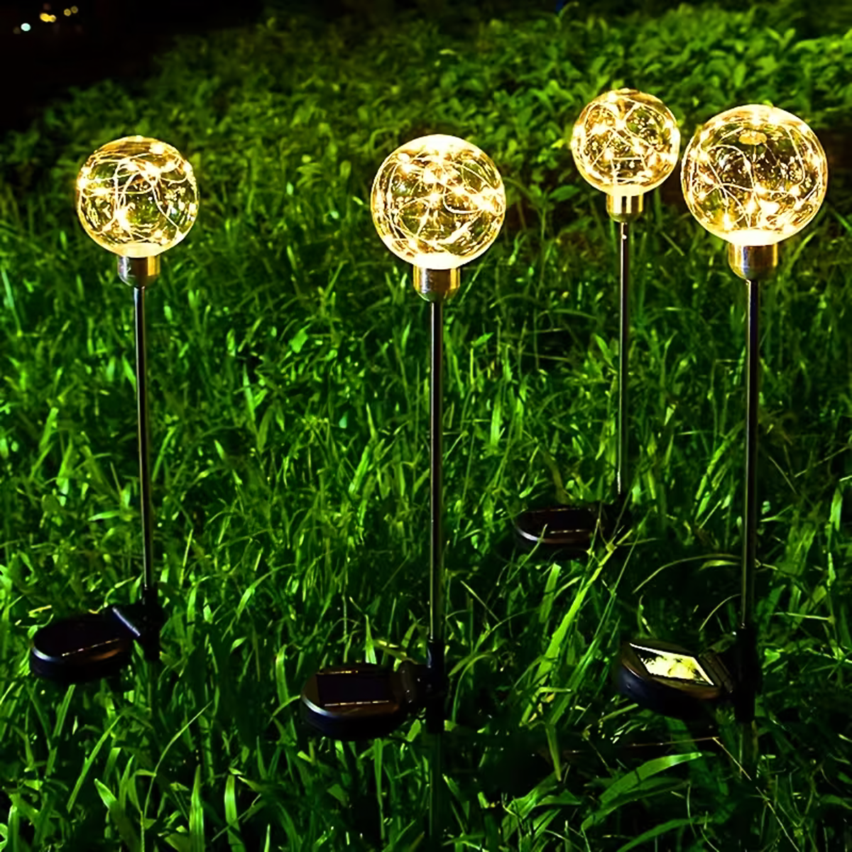 Saules dārza lampas iezemēšanai Led Kula, ūdensizturīgas, 4 gab