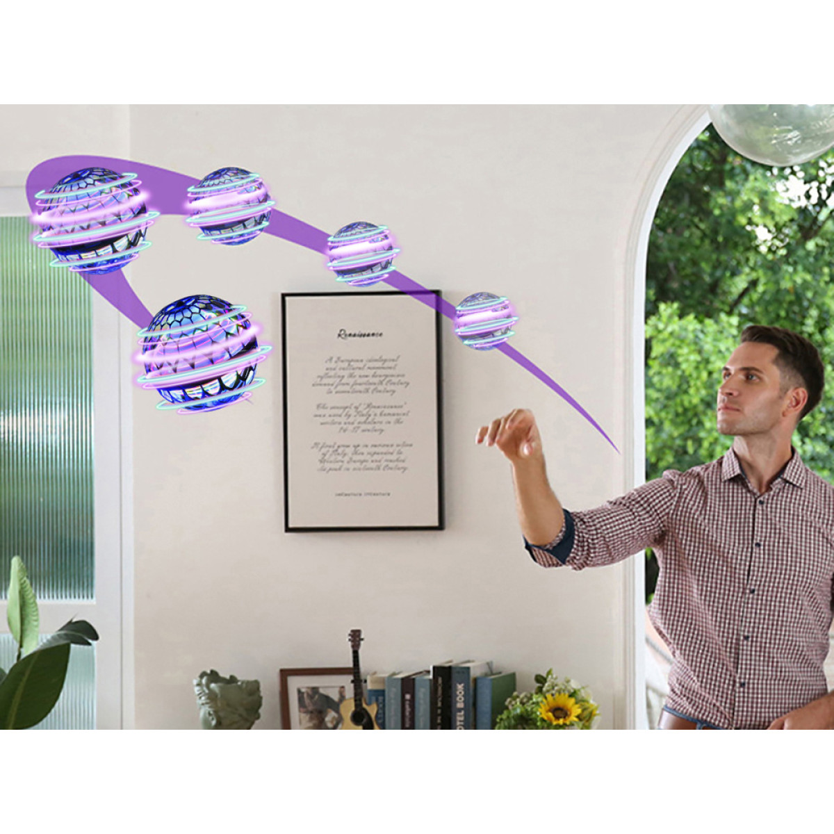 Lidojošā, spīdošā bumba ir rotaļlieta, kas ir ideāli piemērota ikvienam bērnam, kuram patīk neparastas spēles. Rotaļlietu var vadīt ar roku, tā atpazīst priekšmetus zem tās un reaģē uz tiem, paceļoties augšup. Galvenās šīs rotaļlietas priekšrocības: tā lido pati, tiek palaista ar pulti, ir lieliski piemērota spēlēm telpās. Izskatās neticami, kā levitējošs kosmosa kuģis. Tas rada pārsteidzošu iespaidu! Tam ir iebūvēts akumulators, kas tiek uzlādēts ar komplektā iekļauto USB kabeli. Lai apturētu lidojumu, bumbu var izslēgt ar pulti.