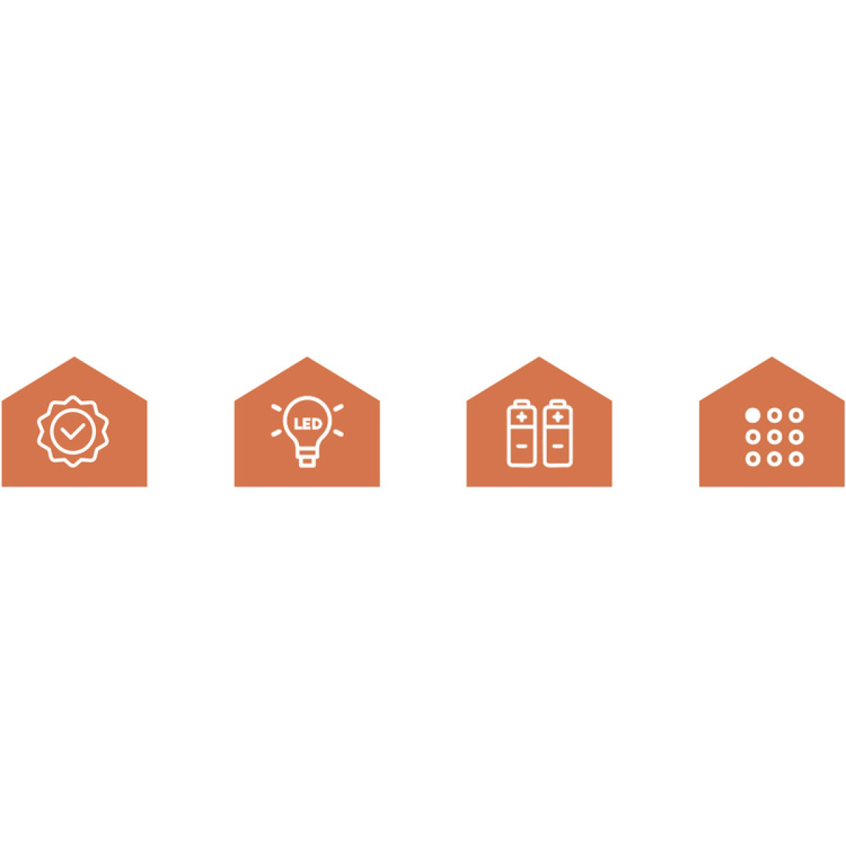 Ilga mūža un energoefektivitāte – mūsdienīga LED diode patērē minimālu enerģiju, un 2 AA baterijas (nav iekļautas komplektā) ļauj svecei darboties vairākas dienas nepārtraukti.