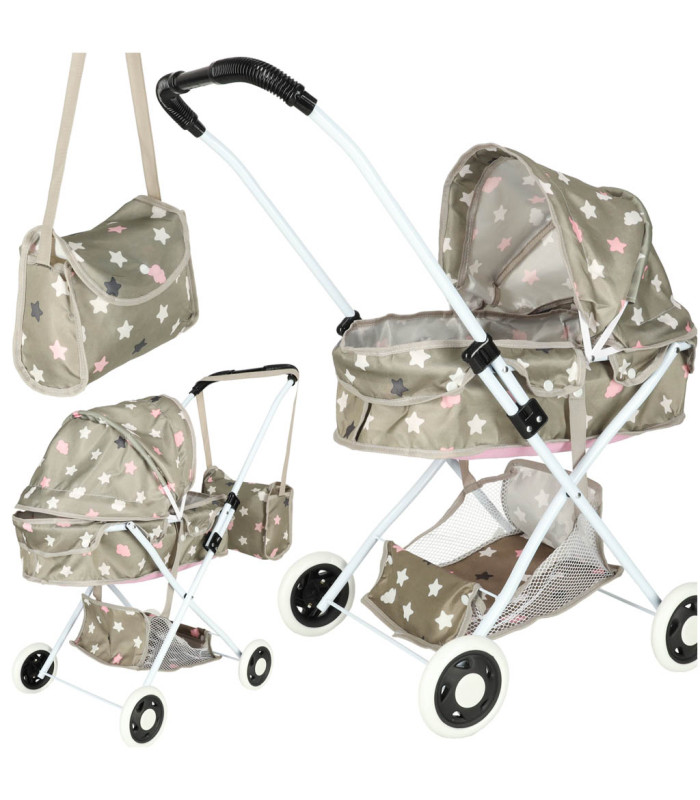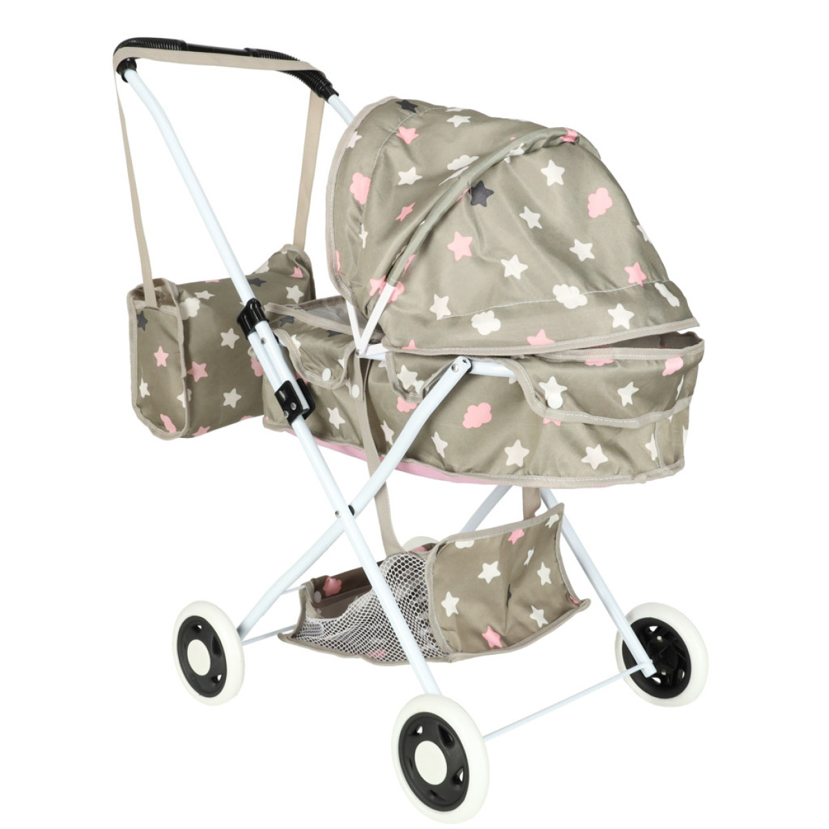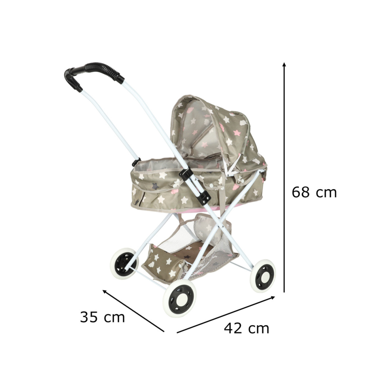 Lelleņu ratiņi ar kulbu - dziļā tipa, ar somu un zvaigznītēm