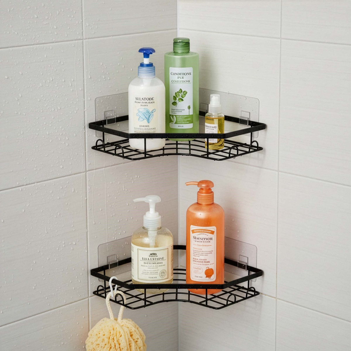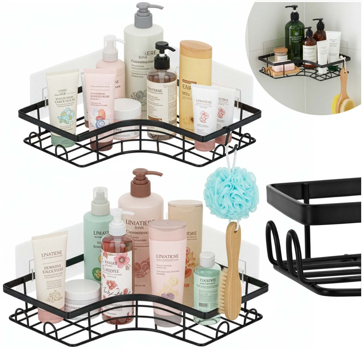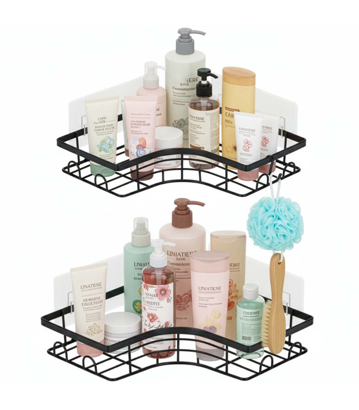 Praktisks un elegants stūra plauktu komplekts, kas palīdz ērti izmantot brīvo vietu vannasistabā, virtuvē vai citā telpā. Komplektā ir 2 dažādu izmēru plaukti, kas izgatavoti no nerūsējošā tērauda melnā krāsā. Tie ir piemēroti ikdienas lietošanai un palīdz uzturēt kārtību.