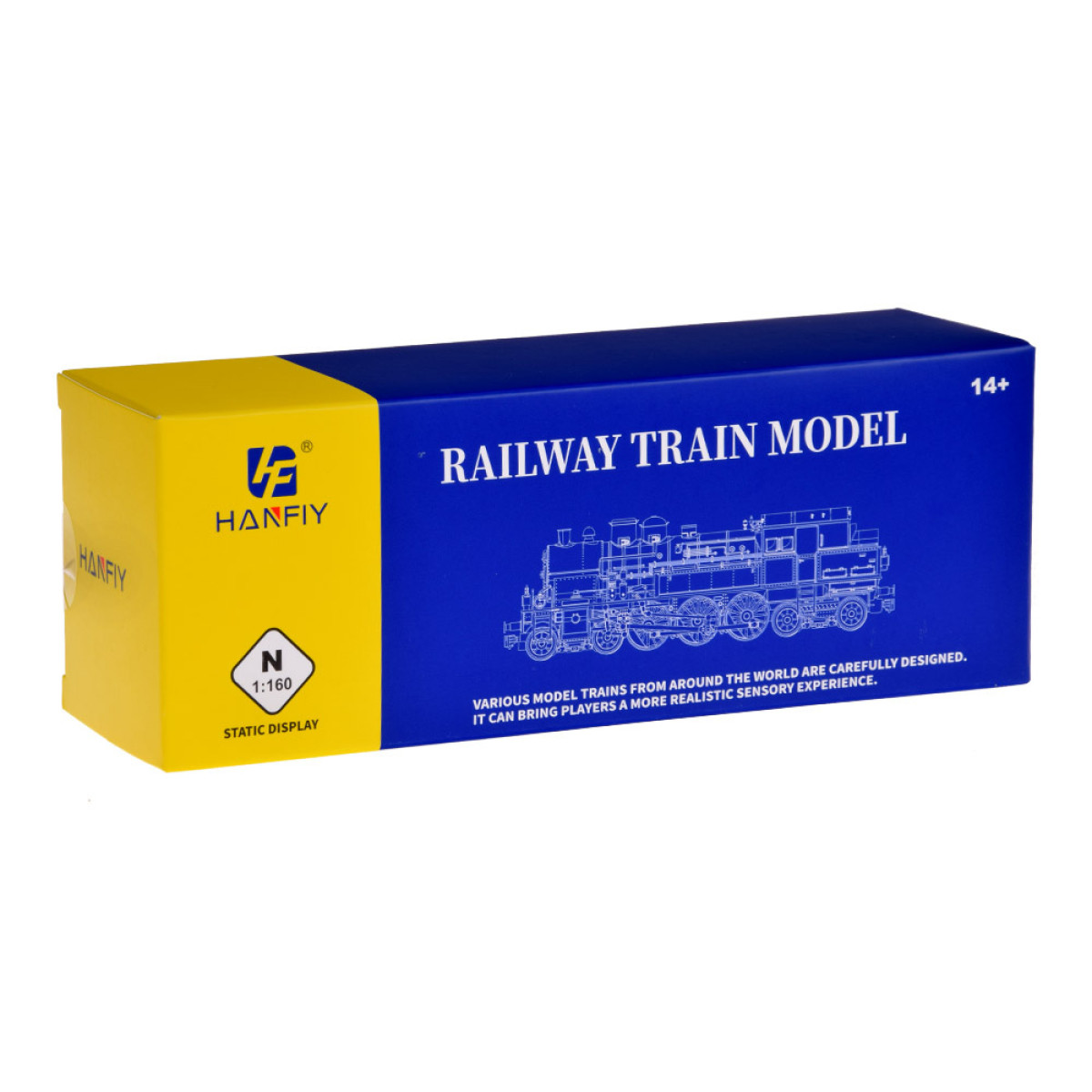 Pats modelis atrodas uz pie pamatnes piestiprinātām sliedēm. Uz tās ir (skatoties no kreisās) valsts karogs, no kuras lokomotīve nāk, zelta plāksnīte ar konkrētu modeļa nosaukumu un mērogu, kādā mašīna ir izgatavota.