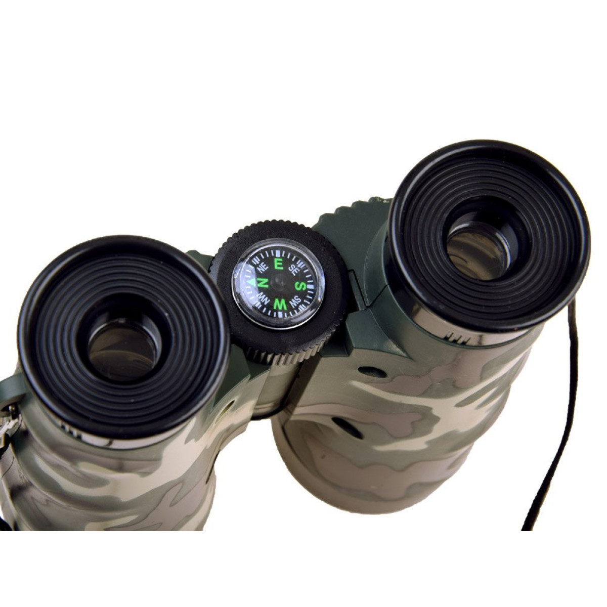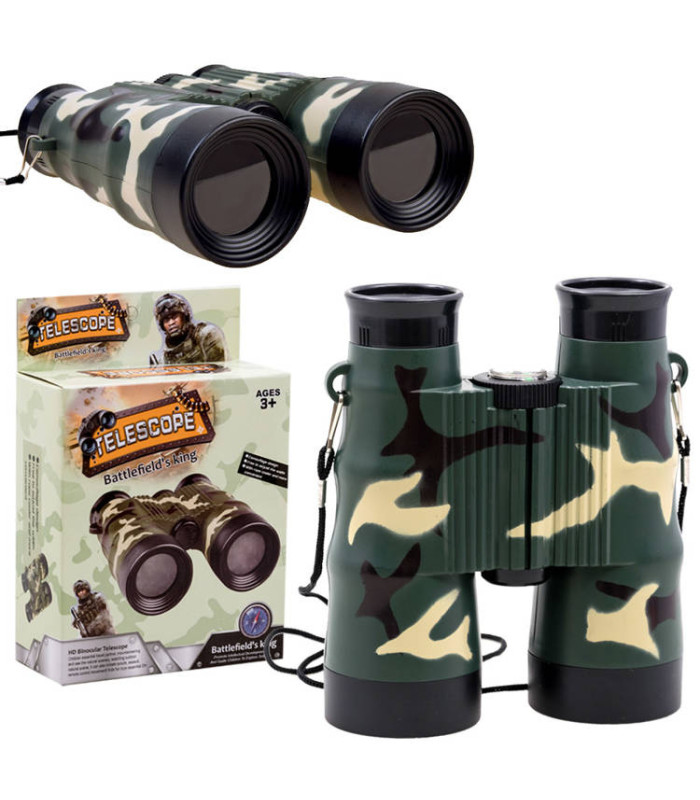 Kompasa binoklis ir būtisks aprīkojums jebkuram karavīram, izpētes speciālistam vai spiegam. Binoklis būs ideāls papildinājums jebkurai militārās tematikas spēlei. Binoklis pieejams trīs dažādās krāsās ar moro grafiku. Lieliska dāvana mazajam atklājējam!
