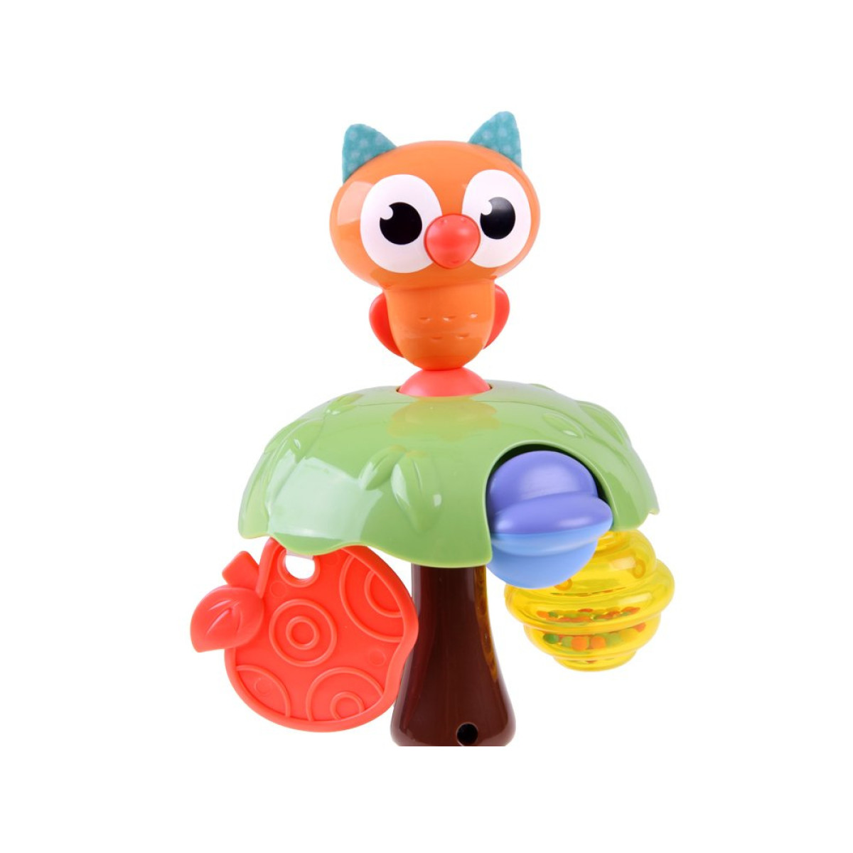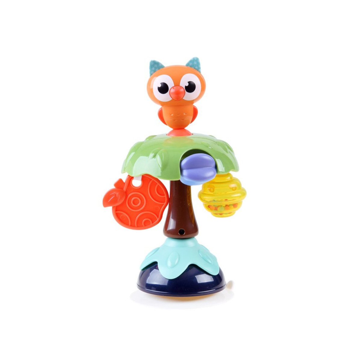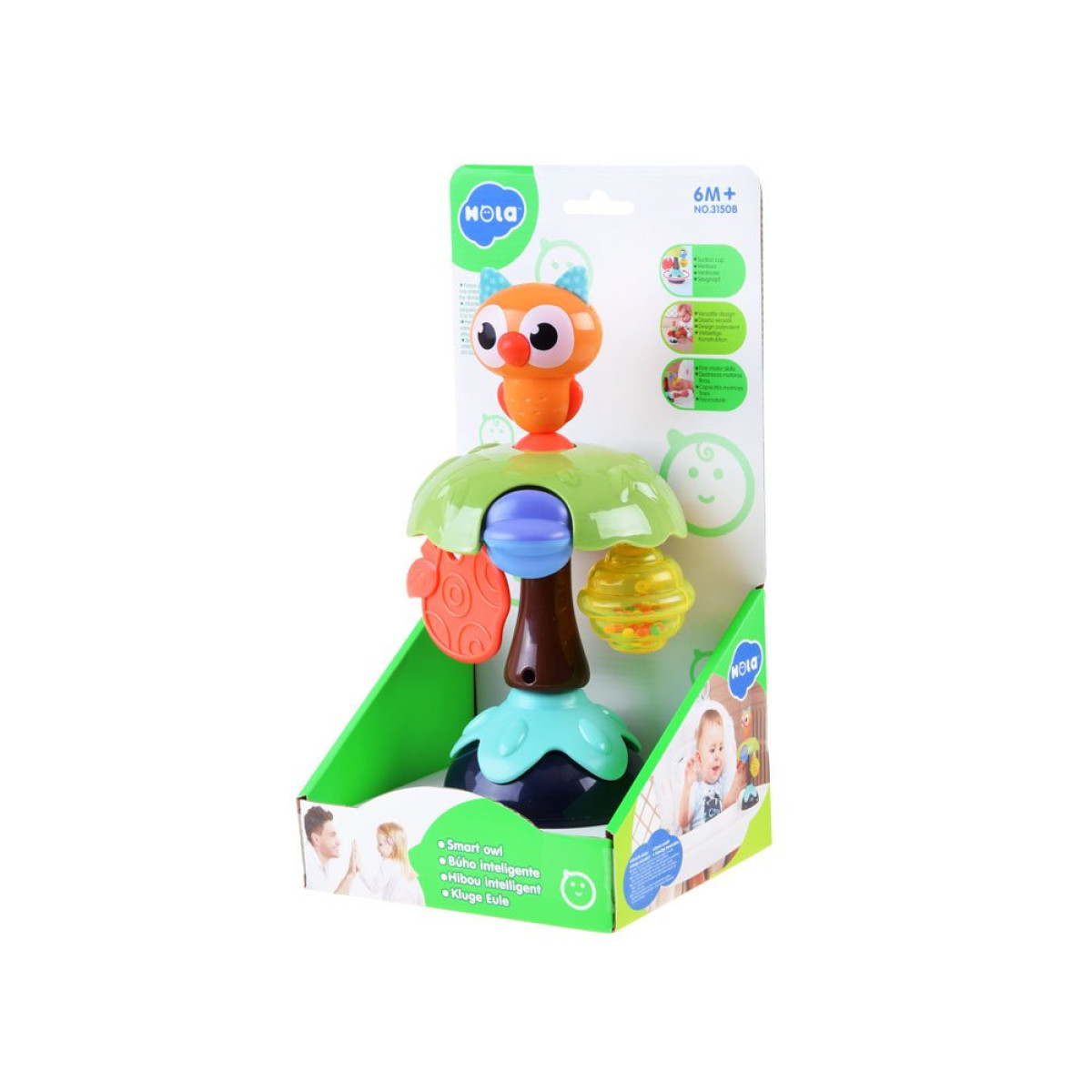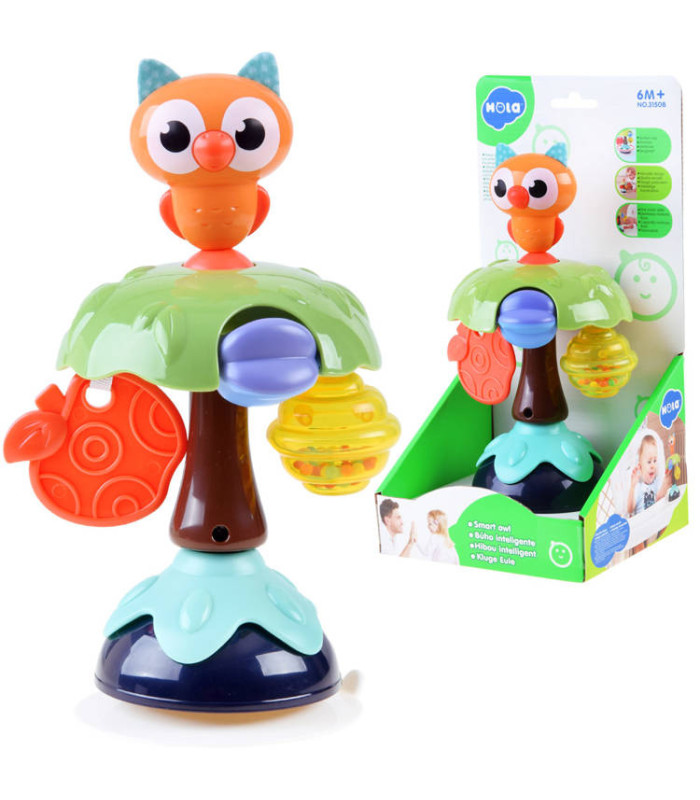 Burvīgi krāsaina graboša rotaļlieta Pūce uz piepūšamās pamatnes ir ideāla rotaļlieta mazākajiem bērniem. Rotaļlieta ir izgatavota pilnībā no plastmasas, tai ir gumijas piepūšamā pamatne, ar kuras palīdzību to var viegli piestiprināt pie gludas virsmas, piemēram, galda, grīdas vai barošanas krēsliņa. Krāsainā pūce noteikti lieliski noderēs barošanas laikā, parastās rotaļās vai vienmēr, kad bērnam nepieciešams nodarboties un izklaidēties.