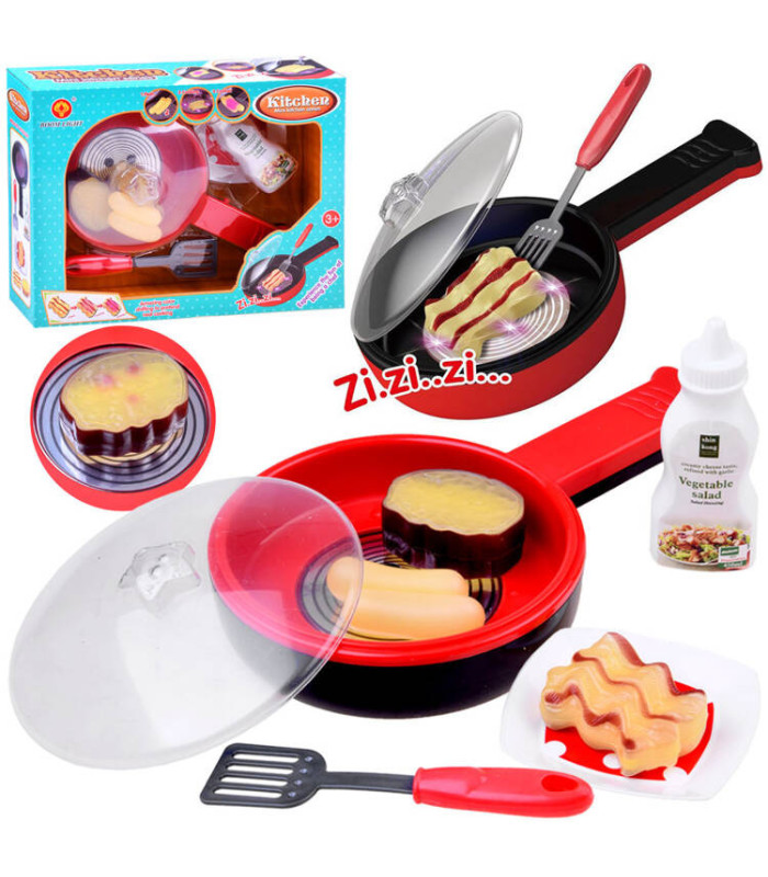 Lielisks komplekts katram mazajam kulinārijas iedvesmas cienītājam. Ar šo komplektu mazais pavārs varēs pagatavot gardu steiku, bekonu vai kraukšķīgu desiņu. Panna, nospiežot pogu uz roktura, sāk spīdēt un izdod ceptu gardumu skaņu. Turklāt, cepšanas produkti maina krāsu, pateicoties gaismiņām, kas atrodas pannas vidū, padarot spēli vēl reālistiskāku. Produkts attīsta iztēli un manuālās prasmes, kā arī sniedz daudz prieka ilgstošā spēlē.