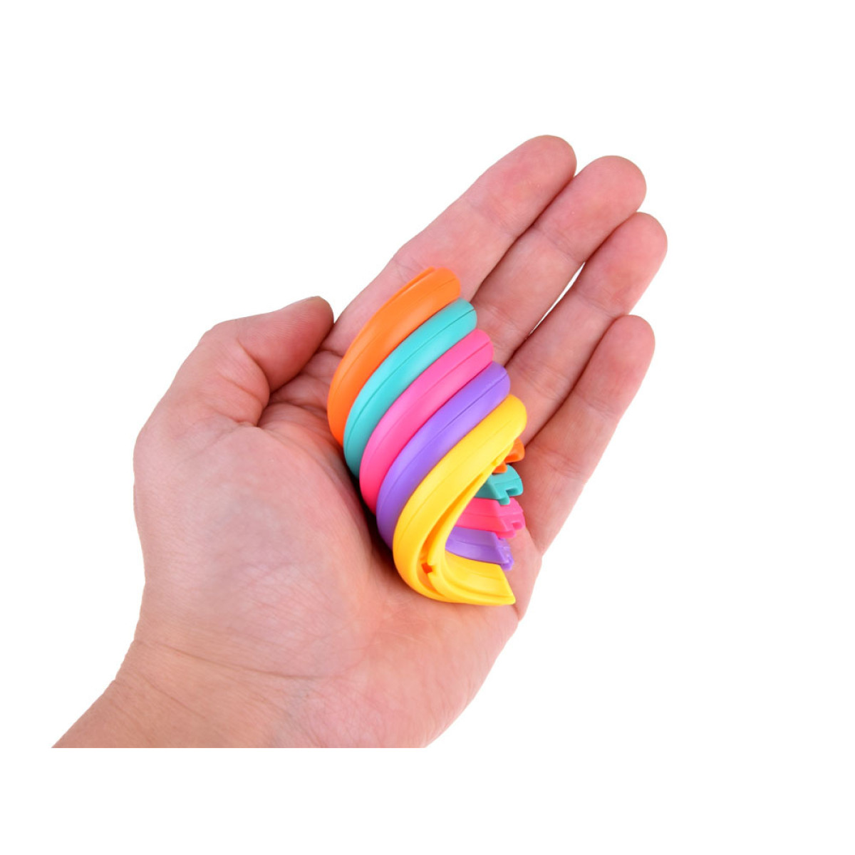 Krāsaina antistresa rotaļlieta ne tikai bērniem. Šis interesants un lielisks stresa mazināšanas sīkrīks ir izgatavots no plastmasas, kas ir spilgtās krāsās. Varavīksnes spirāli var pārvietot bezgalīgi, un vienmērīgās kustības darbojas nomierinoši. Pārvietojot katru krāsu mierīgi, var koncentrēties uz šo darbību, tādējādi rotaļlieta ir arī lielisks laika pavadīšanas veids. Spirāle ir viegla un ērta, to var vienmēr ņemt līdzi, piemēram, braucot ar autobusu, vilcienu vai gaidot rindā pie ārsta. Lieliski piemērota roku nodarbināšanai.