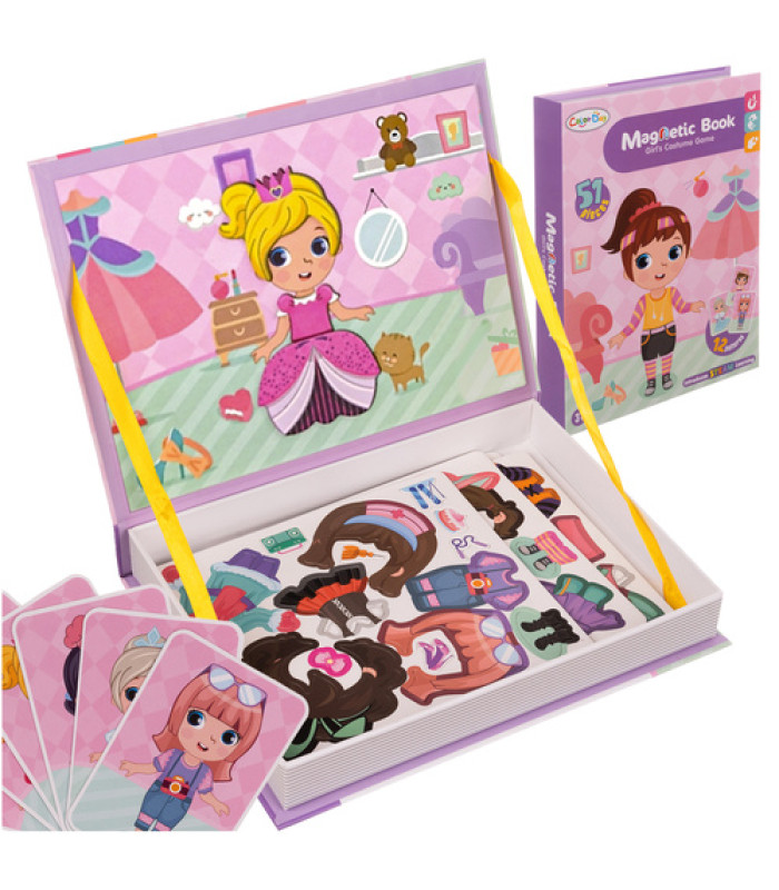 Bagāts spēļu komplekts – magnētiskā puzle ietver daudz dažādu elementu, piemēram, apģērbi, frizūras un aksesuāri, kurus var brīvi kombinēt, veidojot neskaitāmas stilizācijas, tāpēc katra spēle ir citāda, pilna ideju un jaunu iespēju.