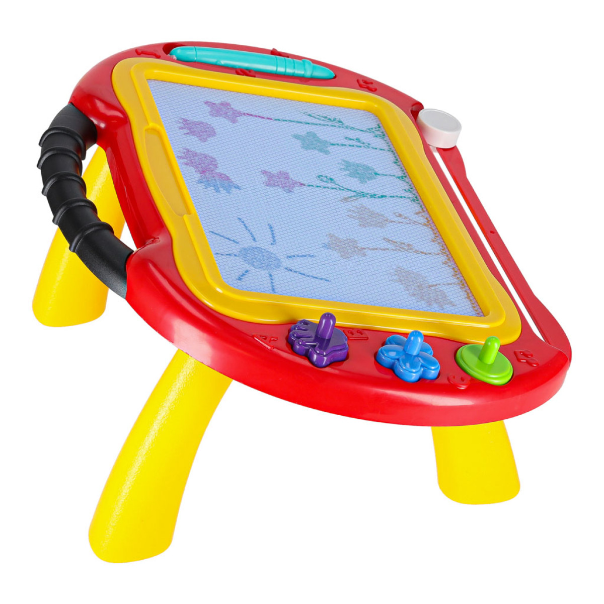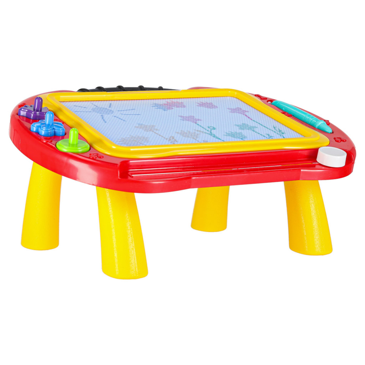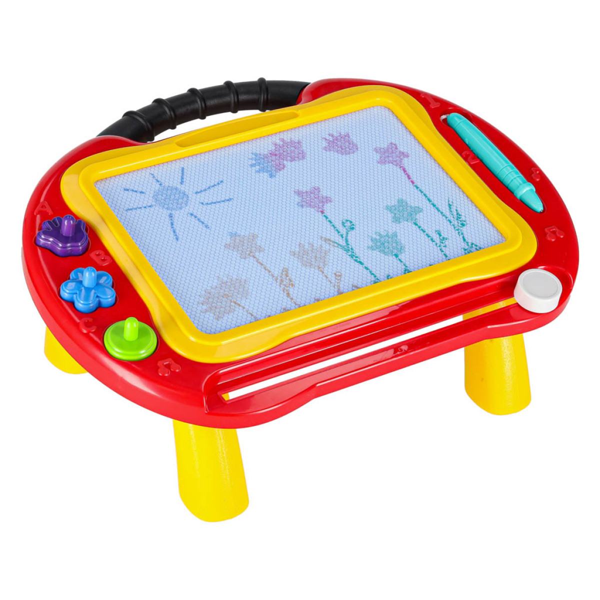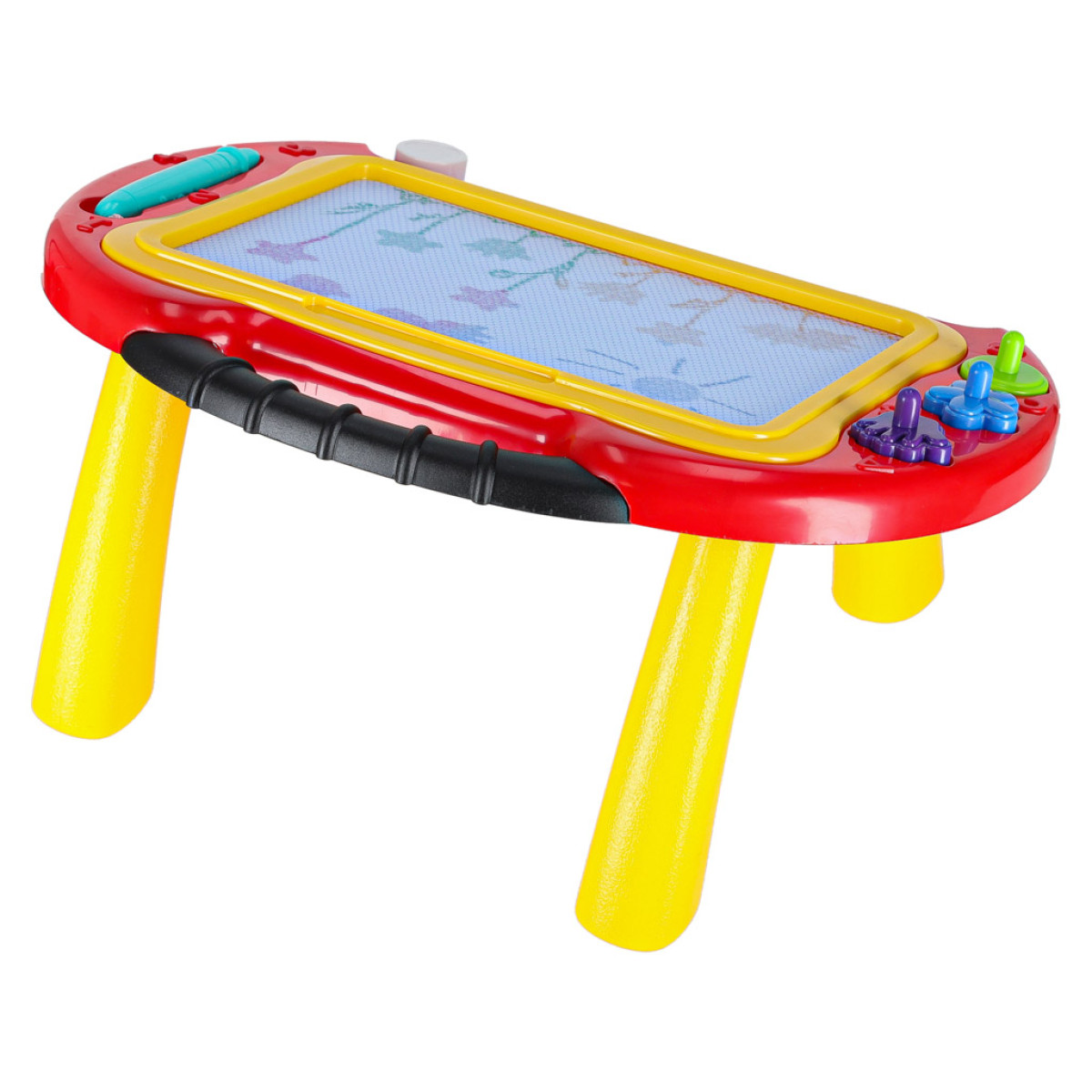 Šī daudzfunkcionālā magnētiskā tāfele ir lielisks risinājums gan kā zīmēšanas galds, gan kā pārnēsājama tāfele. Tā komplektā ietilpst zīmogi, kas padarīs jebkuru zīmēšanas sesiju daudzveidīgāku. Tāfele ir atkārtoti lietojama – vienkārši pabīdiet slīdni apakšā, lai notīrītu tāfeli. Tā ļauj izveidot krāsainus zīmējumus ar 4 dažādām krāsām. Tāfele ir piemērota lietošanai gan mājās, gan ceļojuma laikā, jo tās kājas ir viegli noņemamas, padarot to ērtu transportēšanai.