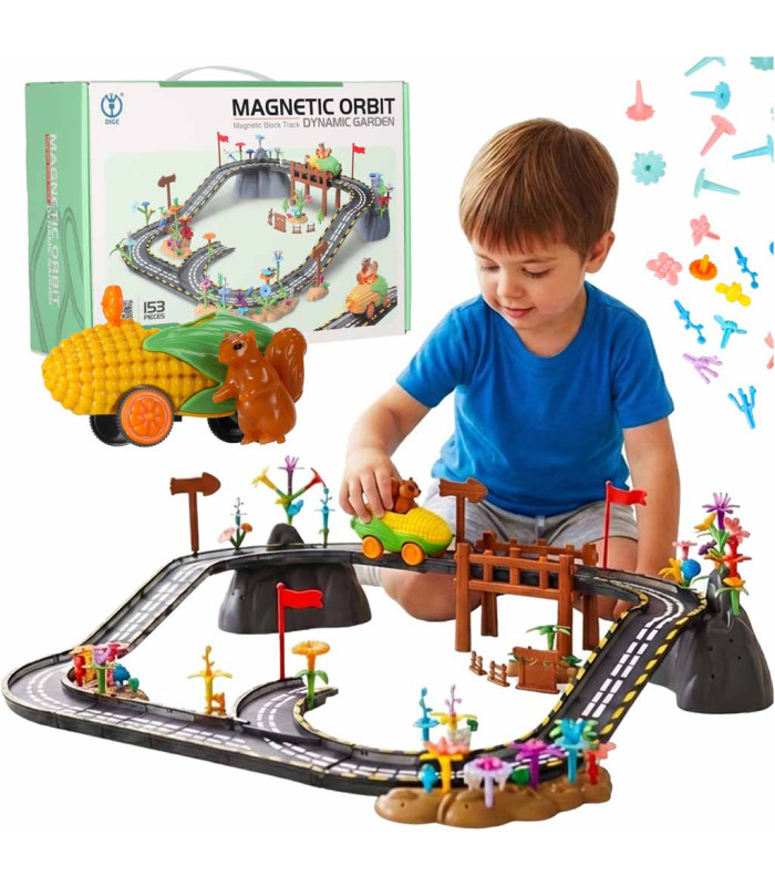 Šis magnetisko bloku komplekts veicina īsta konstruktora domāšanas veidu. Magnetiskie bloki ļauj veidot trasi ar pagriezieniem, kalniem un pārejām starp bagātīgu, krāsainu augu klājumu, kas piešķir visai konstrukcijai izcilu raksturu. Magnetiskie elementi droši savienojas, ļaujot ātri mainīt trases izkārtojumu bez piepūles. Papildu savienojumi no apakšas stiprina visu konstrukciju, padarot trasi vēl stabilāku pat sarežģītākās konfigurācijās.