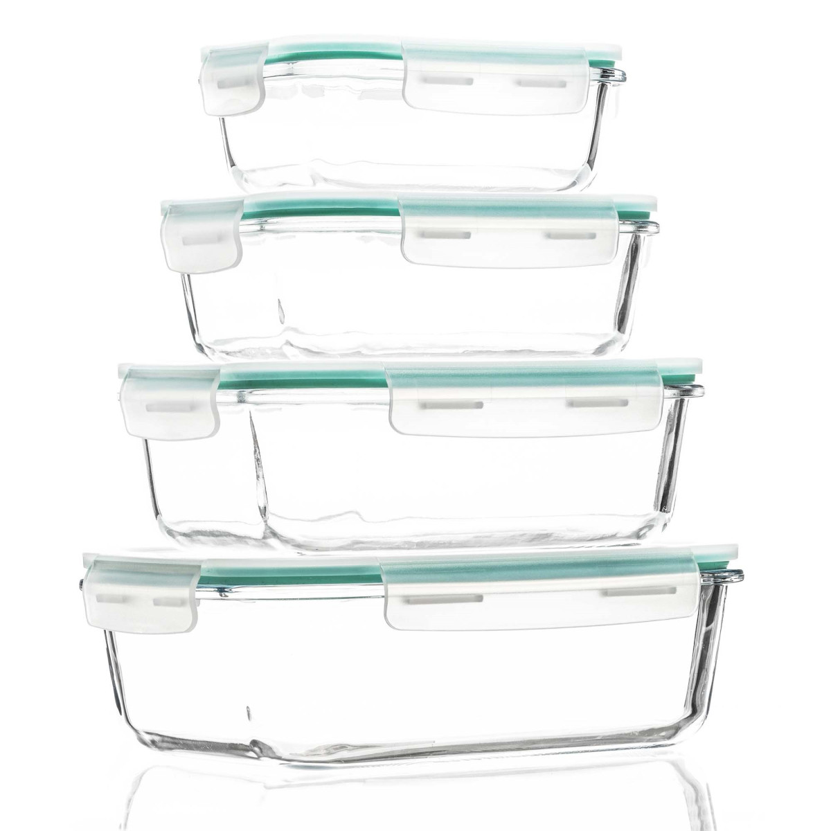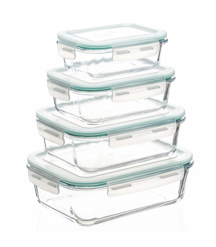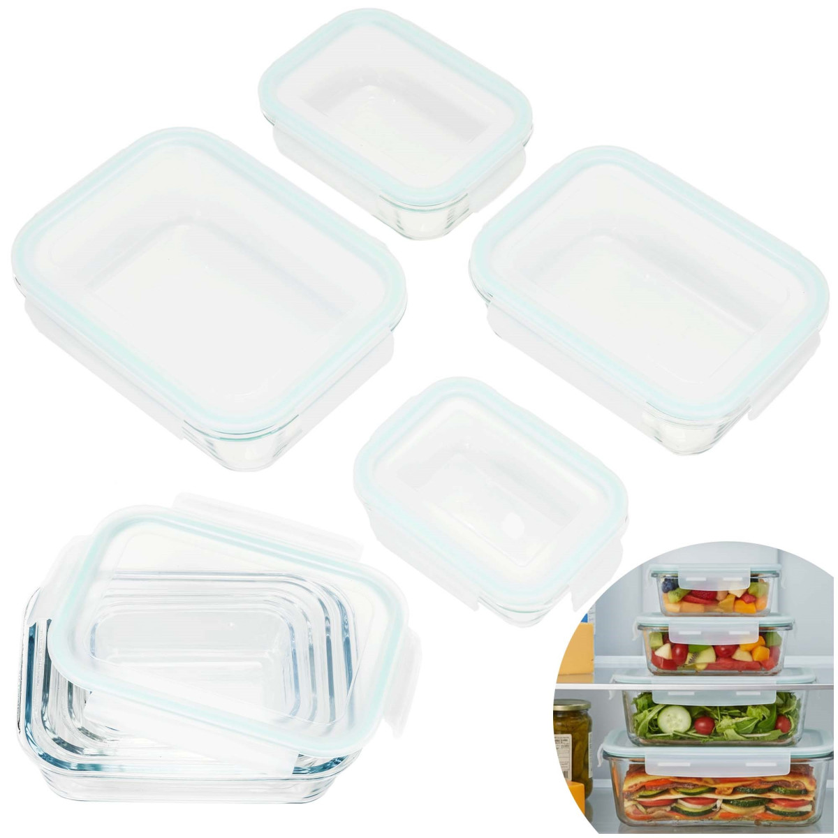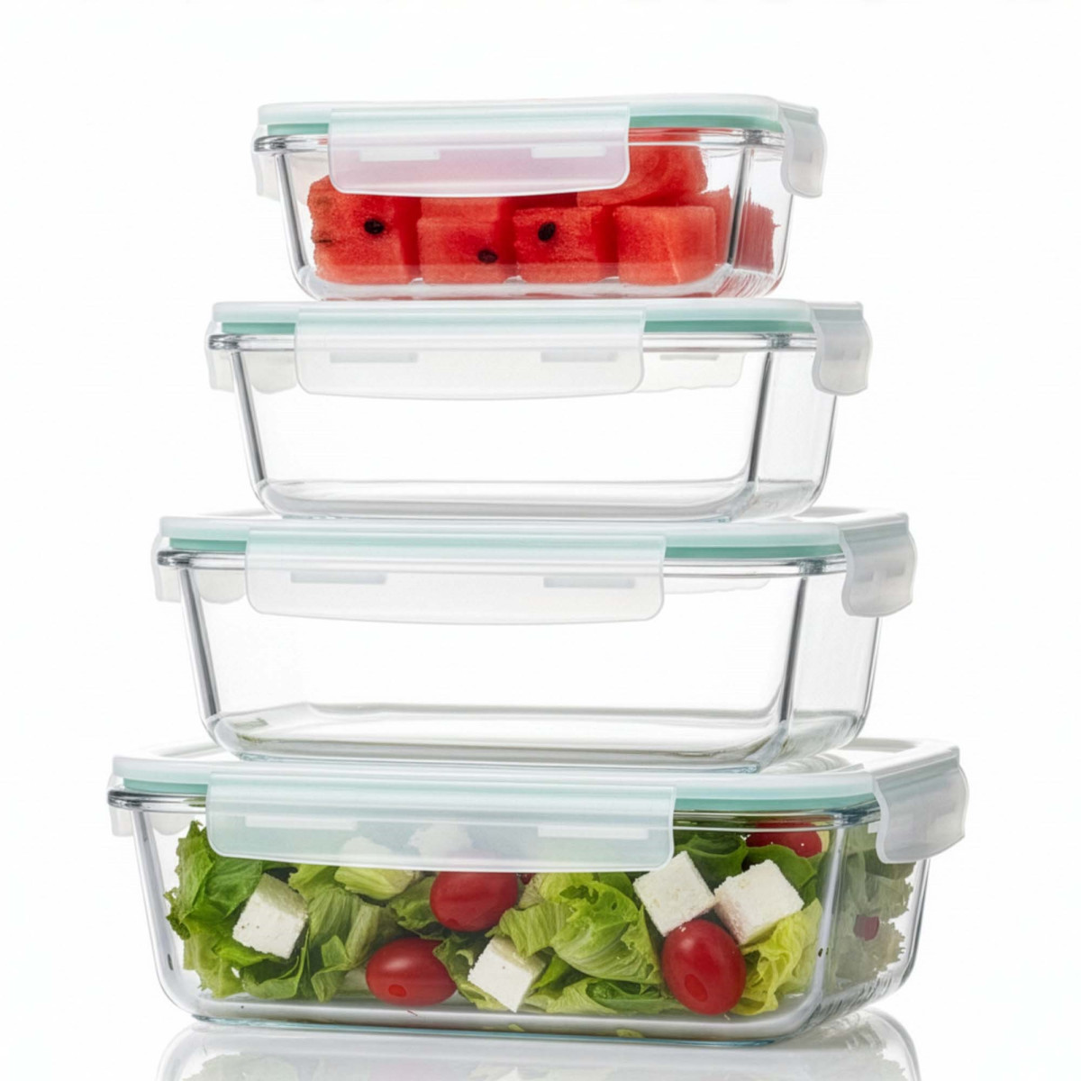 Pārtikas uzglabāšanas trauki virtuvei ar vākiem, 4 gab., stikls, caurspīdīgi