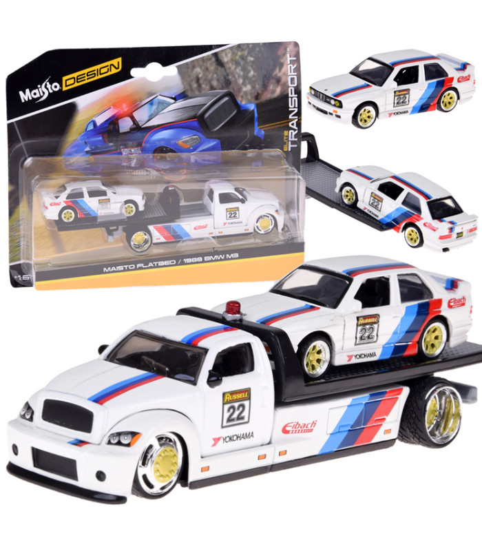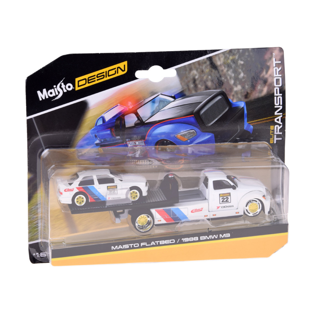 Komplekts ir īsts atradums kolekcionāriem un auto faniem. Tas sastāv no diviem modeļiem mērogā 1:64 – Maisto Flatbed kravas automašīnas un ikoniskā BMW M3 no 1988. gada. BMW ir novietots uz platformas, kas piešķir komplektam īpašu reālismu un padara to vēl pievilcīgāku gan izstādīšanai, gan spēlēšanai.