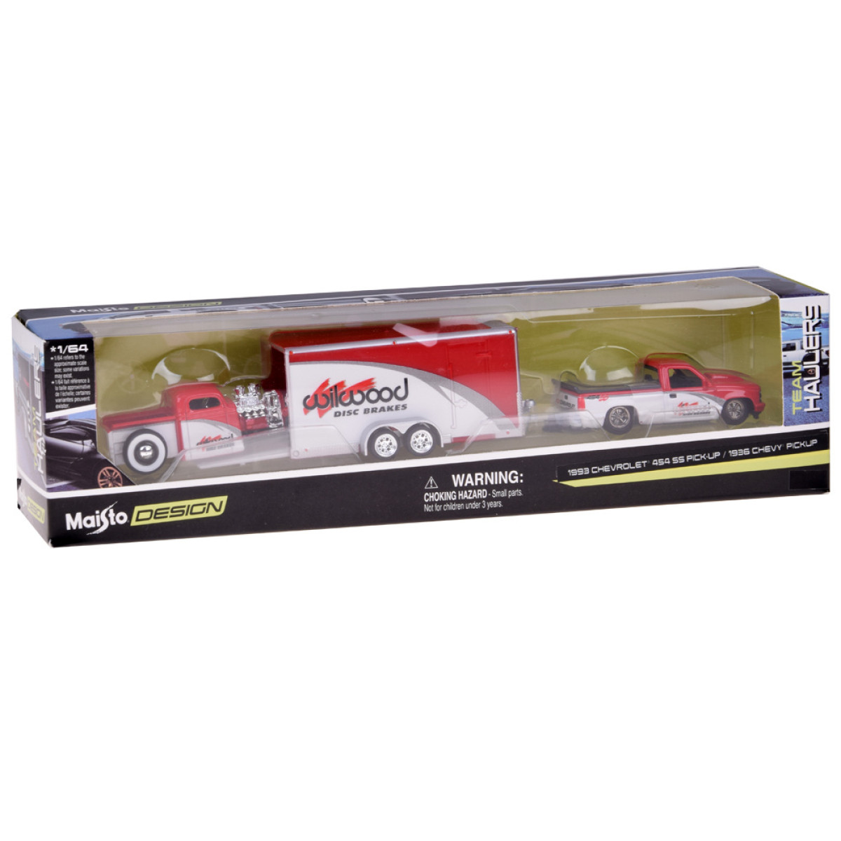 Modeļi ir eleganti sarkanā un baltā krāsu shēmā, kas piešķir tiem klasisku un pievilcīgu izskatu. Chevrolet 454 SS Pick-up 1993 ir aprīkots ar āķi, kas ļauj pievienot piekabi. Āķi var noņemt ar skrūvi, un piekabi var atvienot bez nepieciešamības noņemt āķi. Chevrolet Pick-up 1936 lieliski der uz piekabes, piešķirot komplektam papildus funkcionalitāti un pievilcīgu spēles vai ekspozīcijas elementu.