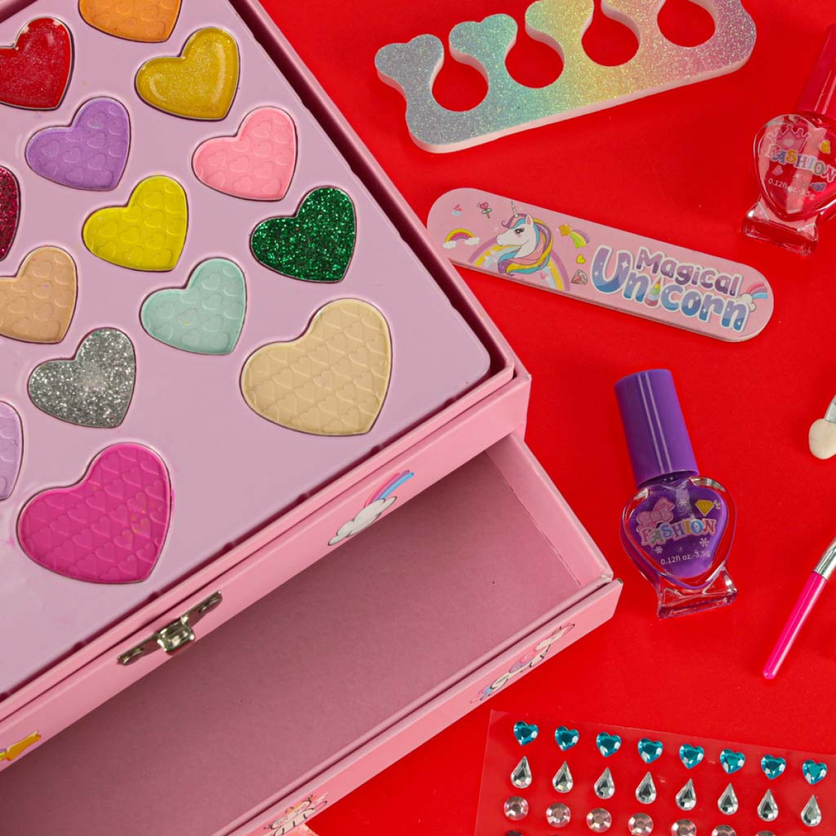 Kosmētika bērniem un nagu kopšanai ir droša un viegli nomazgājama ar ūdeni, savukārt iebūvētais spogulis ļauj apbrīnot stilizācijas efektus, vienlaikus praktizējot pacietību un precizitāti.