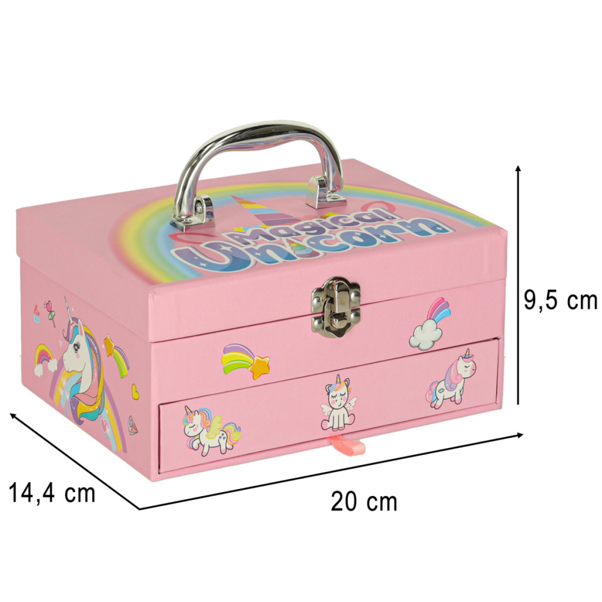 Vienradža kosmētikas kaste ir pilns kosmētikas komplekts make-up un nagu stilizēšanai, kas ir piemērots gan ceļojumiem, gan mājas rotaļām ar draudzenēm. Tas ir piedāvājums, kas ļauj justies īpašam - kā īstai zvaigznei.