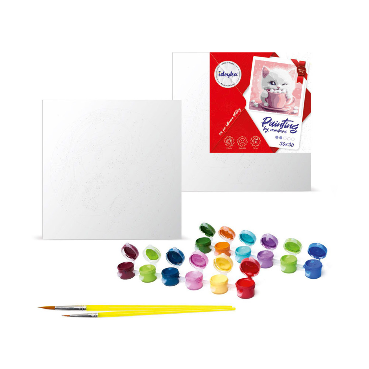 Gleznošana uz audekla pēc numuriem „Kakao kaķim” – relaksējoša un radoša izklaide bērniem!