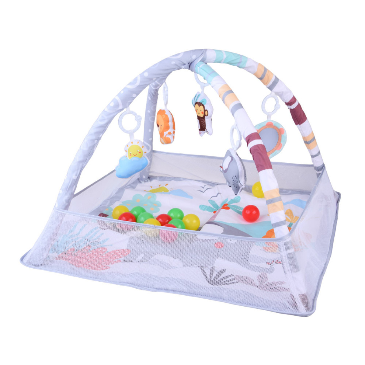 Izglītojošs paklājs zīdaiņiem ir ideāla vieta, kas atbalsta mazuļa attīstību jau no pirmajām dzīves mirkļiem. Kvadrātveida forma, pasteļu krāsas ar jautriem dzīvnieciņiem un rūpīgi izvēlētas rotaļlietas ir izstrādātas, lai stimulētu bērna redzi, dzirdi, tausti un koncentrēšanos.