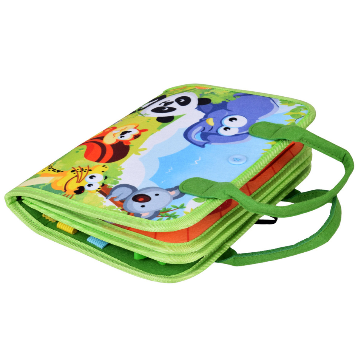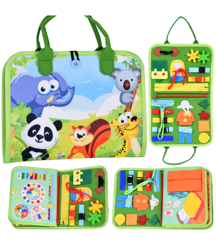 Atklājiet neticamo izglītojošo grāmatiņu, kas veicina bērna attīstību caur spēli! Mūsu sensorā grāmatiņa ir 6 lappuses pilnas ar krāsainiem, kustīgiem elementiem, kas iesaista maņas, attīsta smalko motoriku un māca patstāvību. Uz vāka ir burvīgs dzīvnieku attēls, bet aizmugurē atrodam alfabētu.
