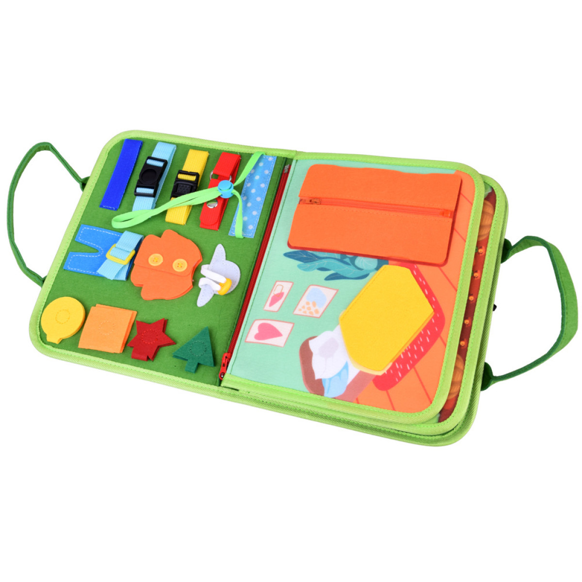 Grāmatiņa ir izgatavota no mīkstiem, drošiem materiāliem un ir paredzēta, lai augtu kopā ar bērnu. Tā ir ideāla izglītojoša dāvana mazajiem, veicinot mācīšanos caur spēli Montessori garā.