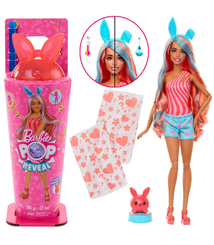 Ieejiet sensoriskās izklaides un jauku pārsteigumu pasaulē ar Barbie® Pop Reveal no sērijas Shakes – šoreiz ar trusi! Šī ir unikāla klasiskās rotaļlietas versija, kas apvieno izpakošanas burvību ar radošu stilizāciju un pārsteiguma elementiem.