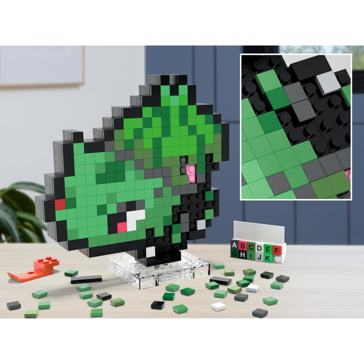 Kopā ar 374 detaļām var izveidot efektīvu Bulbasaur figūriņu, kas ir apmēram 15 cm augsta. Pikseļu stils atgādina pirmās Pokemon spēles no Kanto reģiona, apvienojot nostalģisku estētiku ar modernu pieeju konstruktoriem.