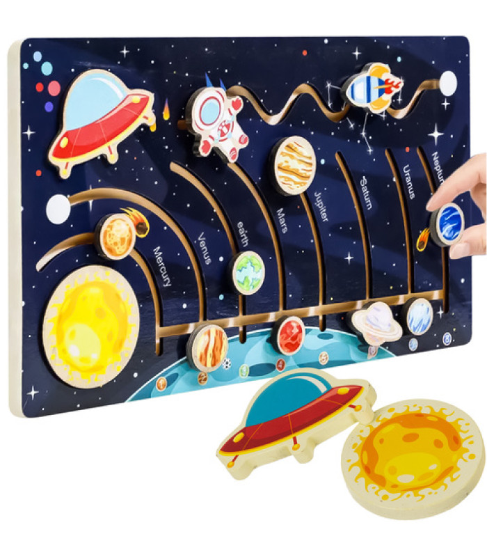 Atklājiet kosmosu kopā ar bērnu - koka Montessori puzle „Saules sistēma”, kas māca caur izklaidi.