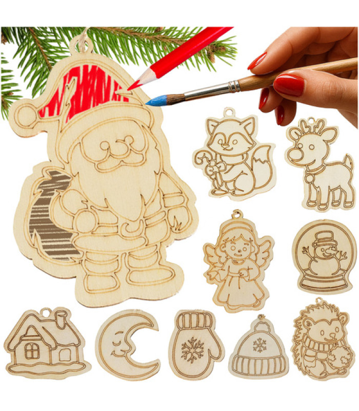 Koka Ziemassvētku rotājumi RUHHY - 24 gabali, ideāli DIY projektiem. Dabīgais koks - izturīgs, viegls un ekoloģisks. Dažādi motīvi - Ziemassvētku vecītis, mēness, ziemeļbriedis, eņģelītis utt. Gatavi caurumi un aukliņas - viegli piekāršanai uz eglītes, loga vai vītnes. Universāls pielietojums - rotājumi, dāvanas, stāvvietas. Piemērots visiem - kopīga radoša izklaide. Daudzreiz lietojami - ilgstošai lietošanai vairākās sezonās.
