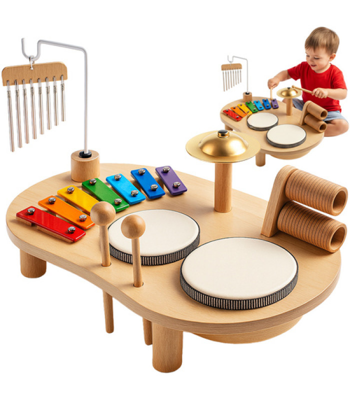 Pasniedziet bērnam rotaļlietu, kas vienlaikus attīsta un izklaidē! Mūzikas galdiņš Kruzzel ir krāsu, skaņu un dabīgu materiālu kombinācija - ideāls veids, kā attīstīt bērna koordināciju, jutekļus un radošumu. Izgatavots no droša koka un metāla, bez asām malām, nodrošina mierīgu spēlēšanos un ilgstošu izturību. Tas ir ideāla Montessori dāvana, kas atbalsta sensoro un muzikālo attīstību, sniedzot daudz prieka katru dienu.
