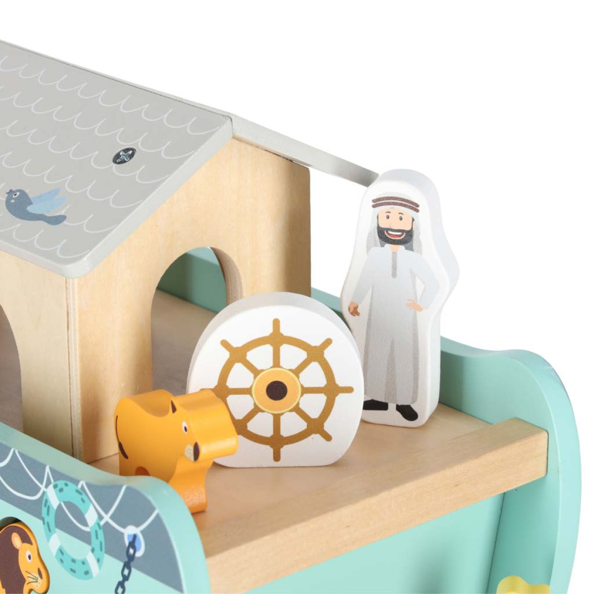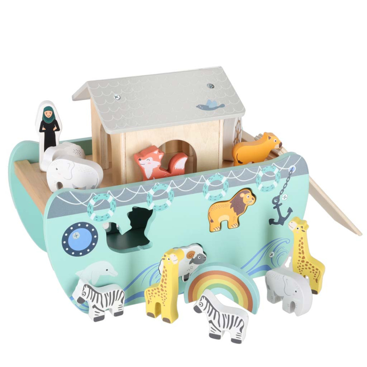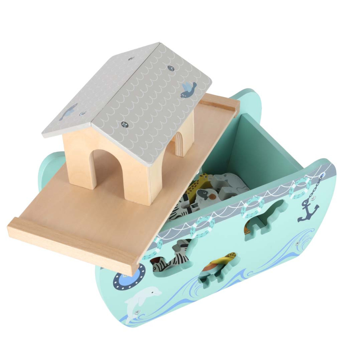 Komplektā ir koka rūpīgi izgatavotas dzīvnieku figūras (zebras, žirafes, ziloņi, aitas, lauvas, lapsas), kas iepazīstina bērnus ar laika gaitā pārbaudītu stāstu. Papildus tam ir arī Noasa un viņa sievas figūras. Pateicoties tām, rotaļas pārvēršas stāstā par to, kā Noasa šķirsts palīdzēja izglābt dzīvniekus.