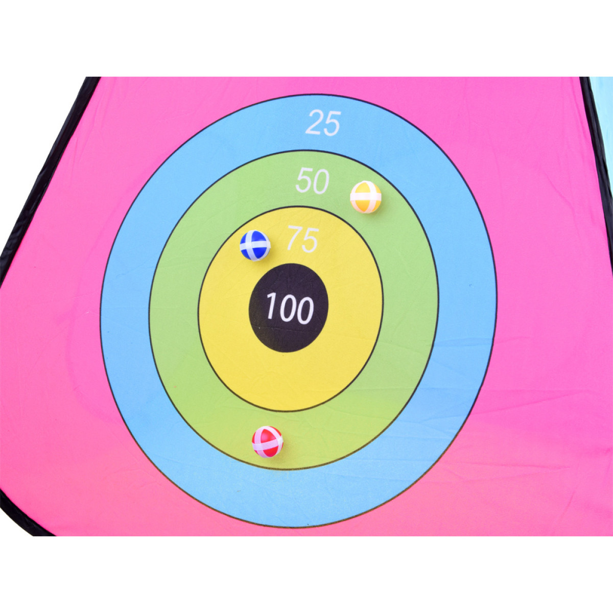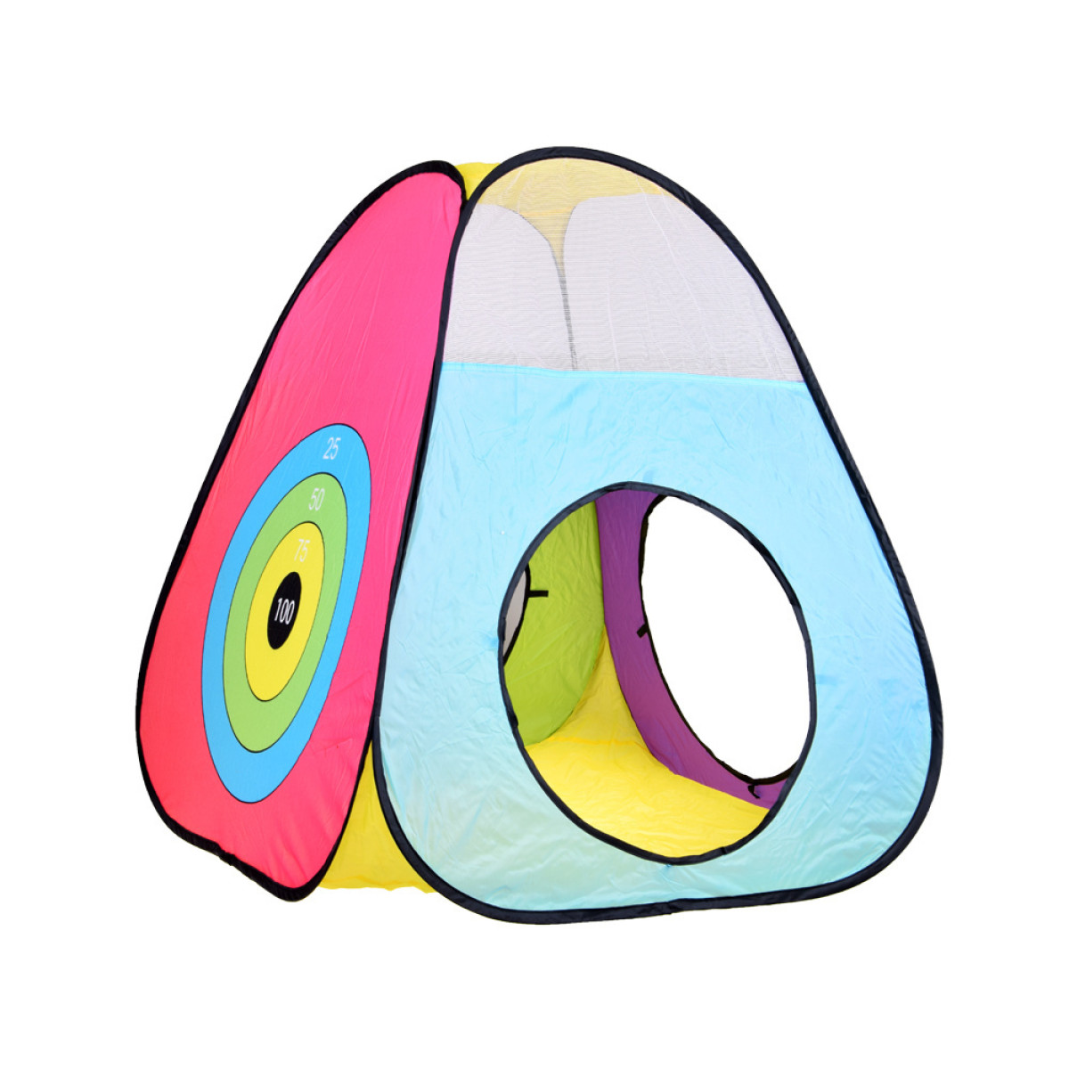 Trīsstūrveida telts: aprīkota ar bumbiņu mērķi un speciāliem caurumiem, kas atbilst bumbiņu krāsām.