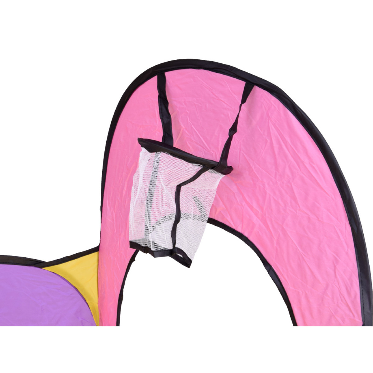 Baseina/rotaļu bumbu telts: ietilpīgs bumbu glabāšanas nodalījums un bumbiņu grozs (bumbiņas nav iekļautas).