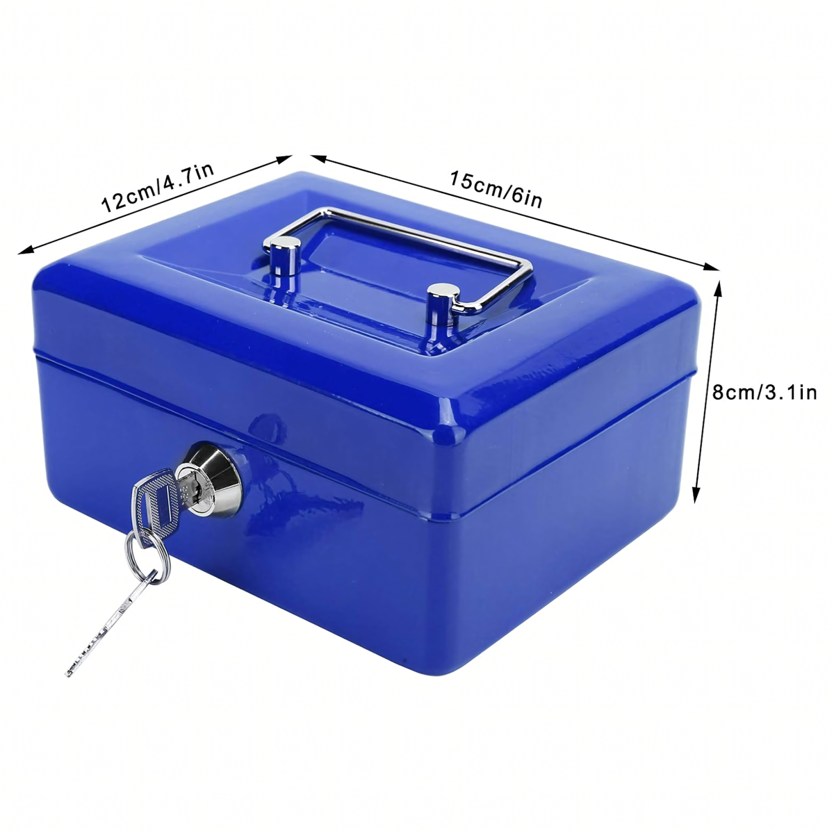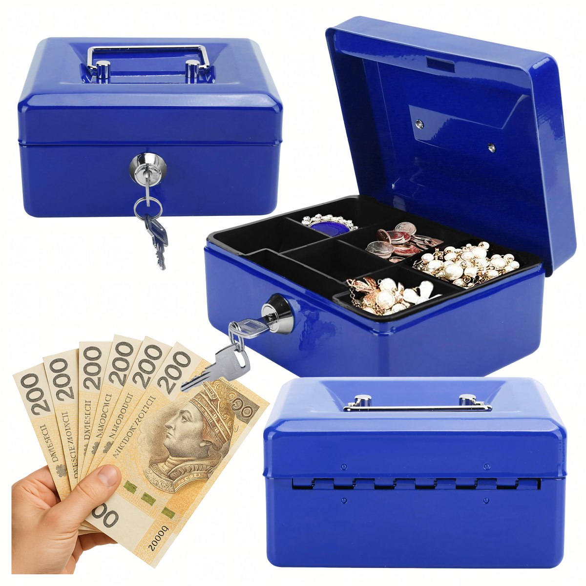 Metāla kase naudu monētām dokumentiem seifs atslēgas