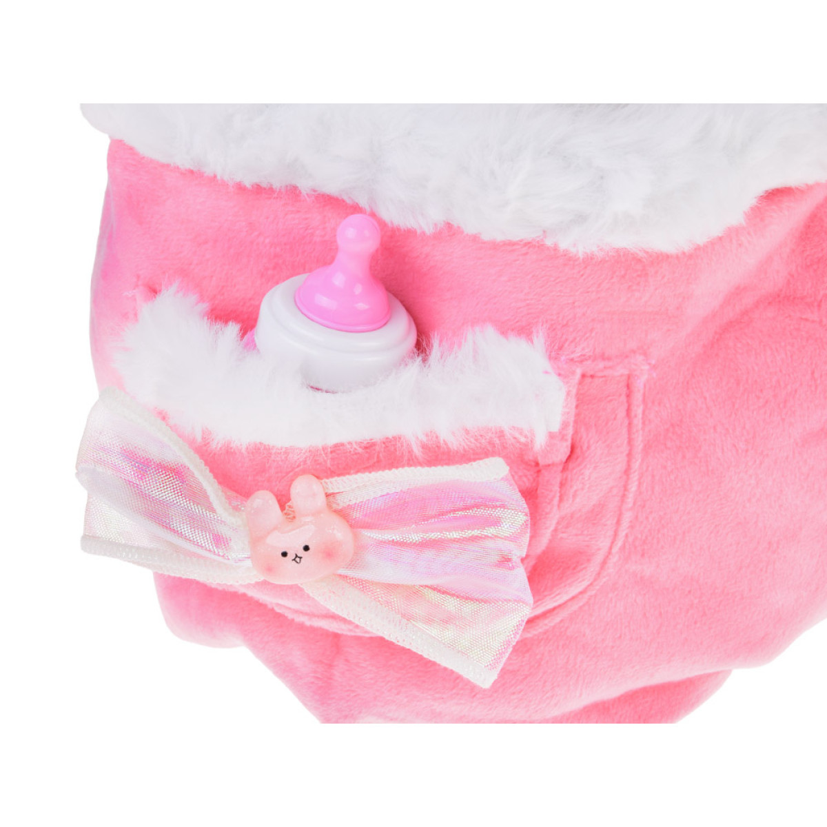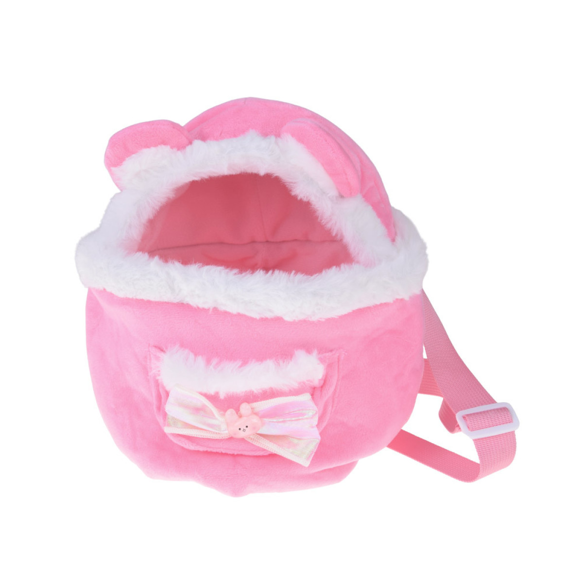 - Komplektā ir rozā mugursoma ar ausīm un kažokādu, kas aprīkota ar regulējamām lencēm, ļaujot bērnam to ērti nēsāt uz muguras. Somai ir arī praktiska kabata sīkumiem.