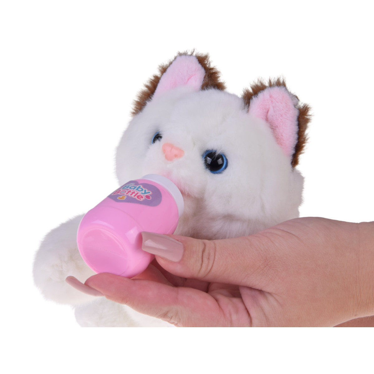 - Pievienotā pudelīte ļauj barot kaķi – ievietojiet to mutē, lai rūpes par mīluli būtu vēl reālistiskākas.