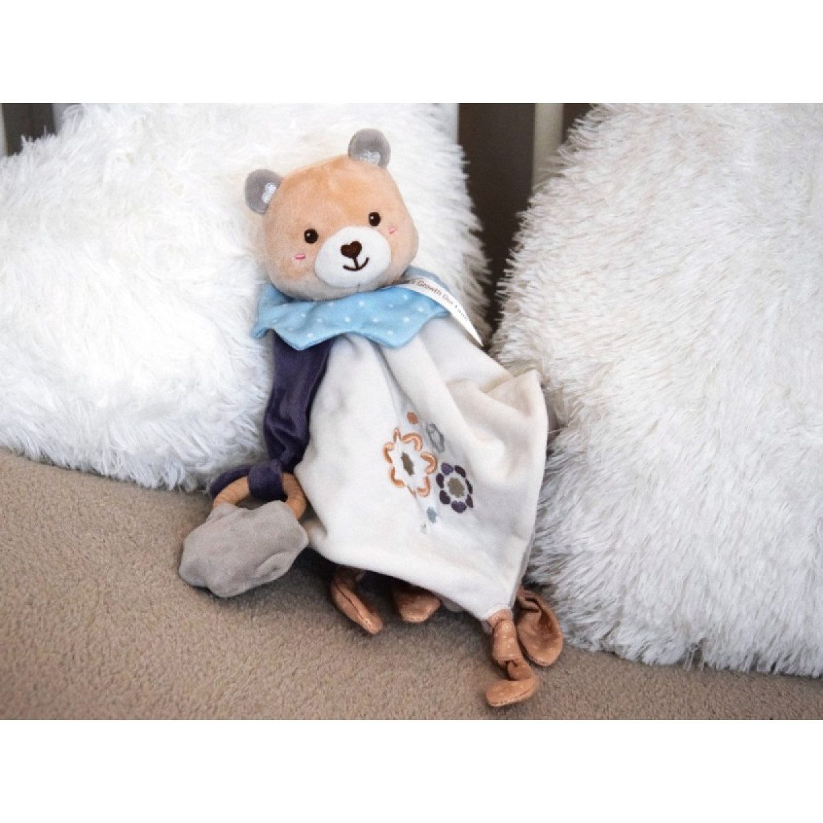 Minkštas žaisliukas MEŠKIUKAS su pleduku ir kramtukėliu – dovana kūdikiui ZA5879
