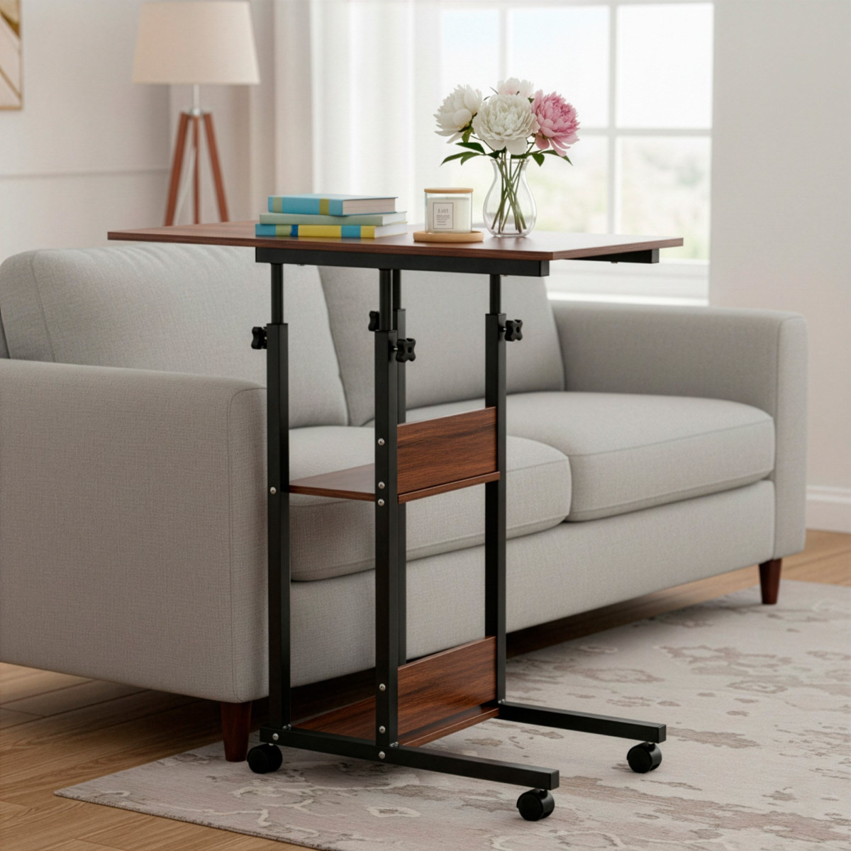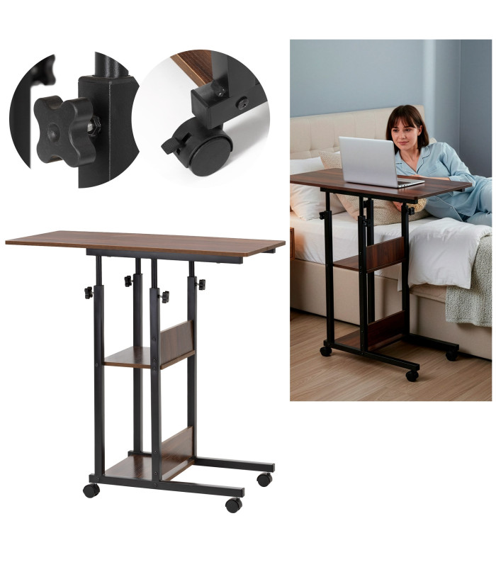 praktisks un ērts mobilais galds ikdienas lietošanai mājās vai birojā. tas ir piemērots darbam ar datoru, mācībām, rakstīšanai vai dažādu priekšmetu novietošanai. galdam ir regulējams augstums, izturīga konstrukcija un riteņi, kas ļauj to viegli pārvietot uz vajadzīgo vietu.
