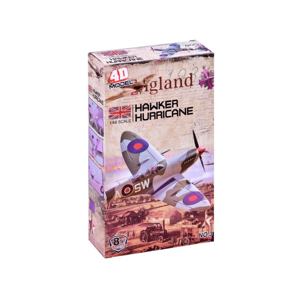 Hawker Hurricane ir britu vienvietīgs, vienmotora iznīcinātājs. Šī lidmašīnas modelis 1:48 mērogā ir izgatavots no plastmasas detaļām, kas ir viegli saliekamas, un ir piemērots gan iesācējiem, gan modelēšanas entuziastiem. Šis komplekts ļauj izveidot militāro lidmašīnu, attīstot telpisko iztēli un detalizēti apskatot tās elementus tuvplānā.