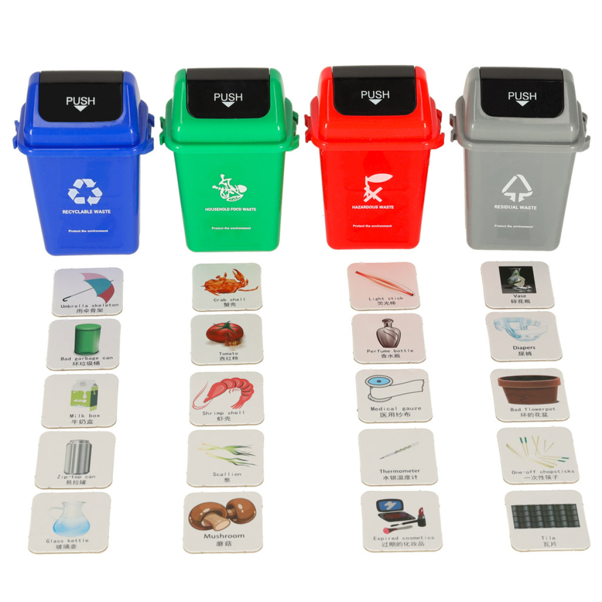 Atkritumu šķirošana ir izglītojoša un loģiska spēle, kas bērniem pieejamā un aizraujošā veidā iepazīstina ar ekoloģijas pasauli. Lielu interesi un vēlmi spēlēt izraisa koši, reālistiski atkritumu konteineri un produktu kartītes, bērni uzzina, kas ir atkritumu šķirošana, iepazīst šķirošanas principus un mācās atpazīt, ko un kur ir jāizmet.