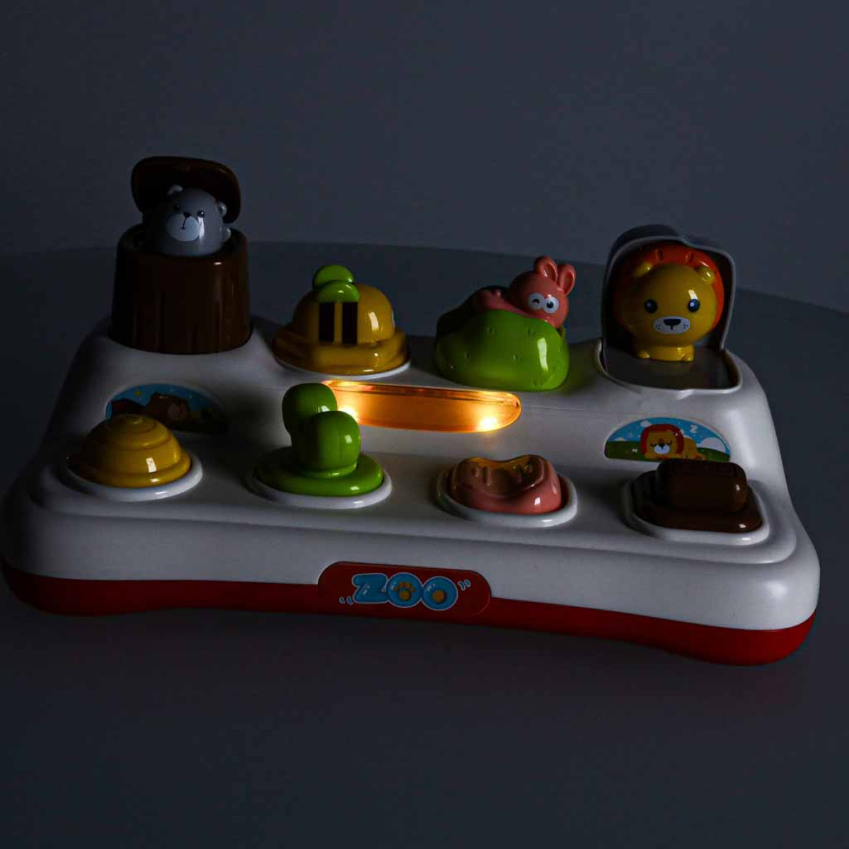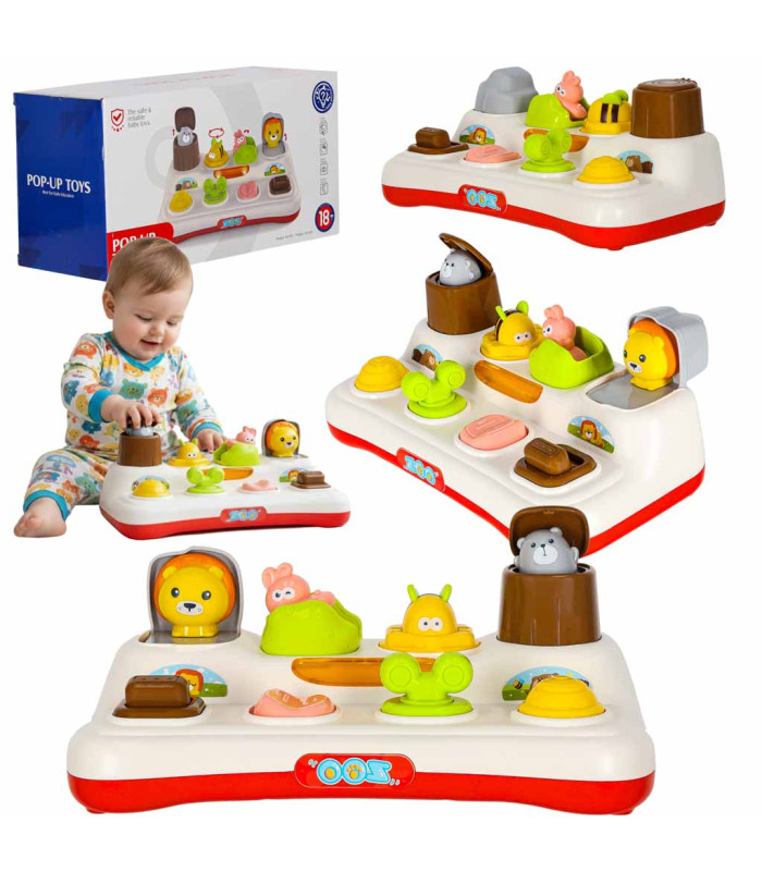 Bērnu izglītojoša rotaļlieta ar dzīvniekiem, kas parādās uzspiežot, ar gaismu un skaņu.