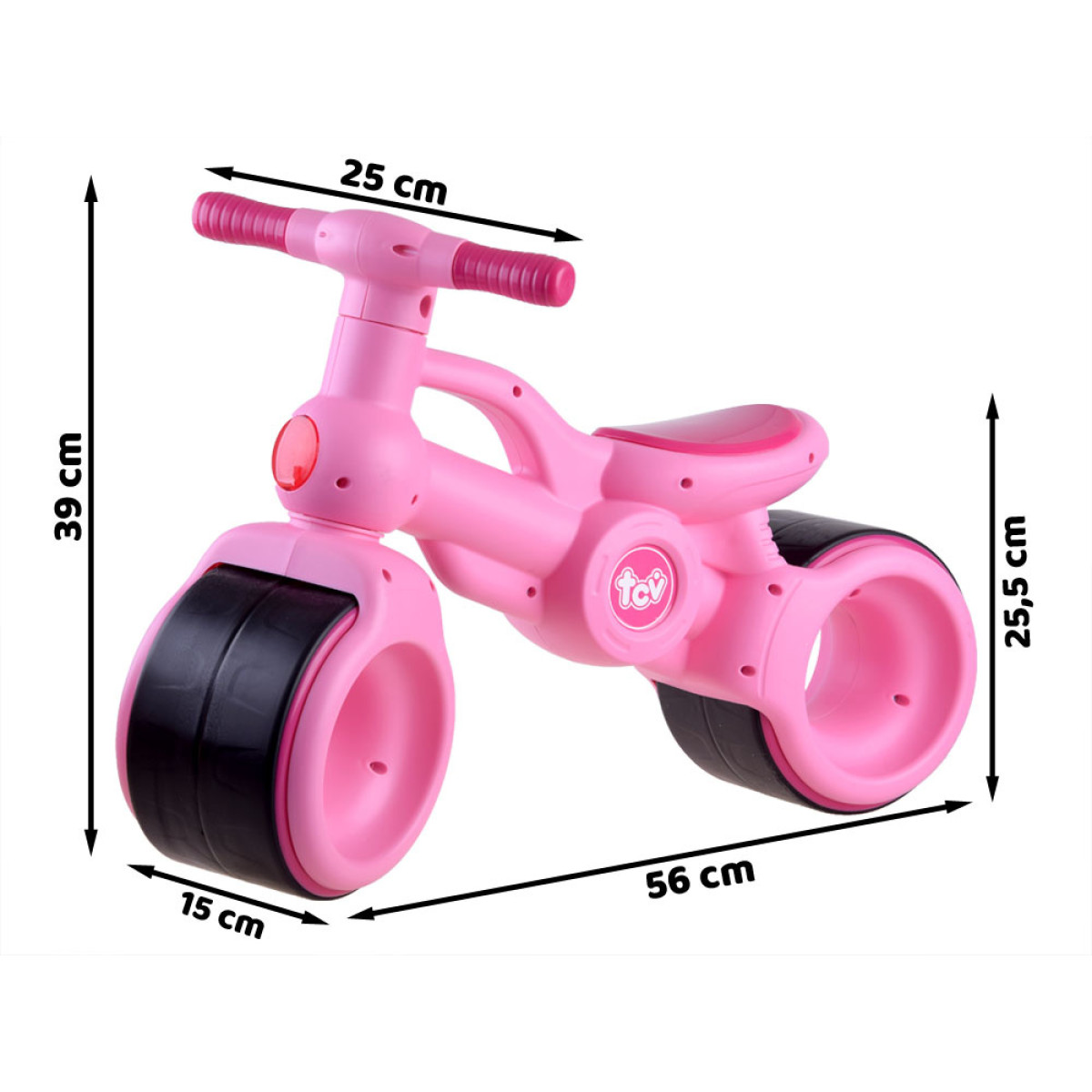 Bērnu līdzsvara velosipēds TCV Rozā ir ideāls pirmais braucamrīks mazai meitenei. Rozā līdzsvara velosipēds ir paredzēts pašiem mazākajiem. Velosipēds ir izgatavots no augstākās kvalitātes plastmasas, ir stabils, un tā gludās formas padara to ļoti drošu. Pateicoties izcilajai krāsu shēmai un unikālajam dizainam, tas ir brīnišķīgs transportlīdzeklis mazulim.