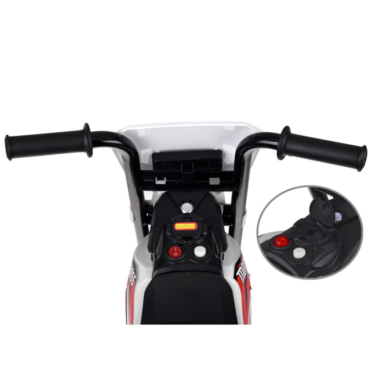 Motocikls tiek iedarbināts ar pogas palīdzību. Blakus atrodas poga, kas ieslēdz mūziku - izvēlei pieejamas vairākas enerģiskas dziesmas angļu valodā, kas padara braucienu vēl patīkamāku. Transportlīdzeklim ir elektriskā bremze, kas darbojas, kad kāja tiek noņemta no akseleratora pedāļa. Vēl viens motocikla priekšrocība ir viegla iekāpšana un izkāpšana, ļaujot bērnam pašam kontrolēt braucienu. Ērts, profilēts sēdeklis nodrošina komfortu brauciena laikā.