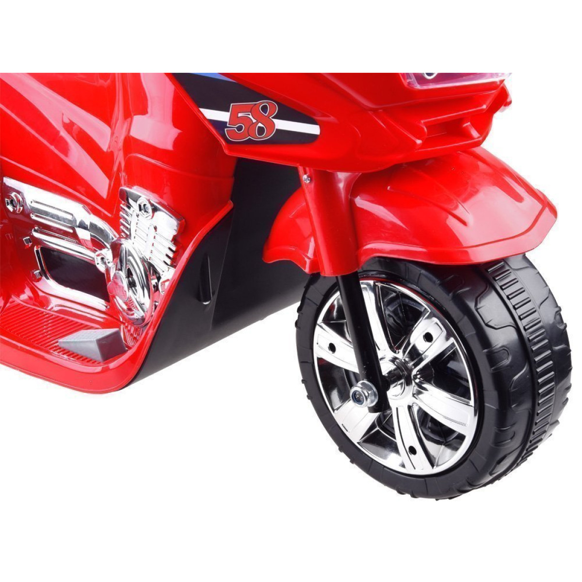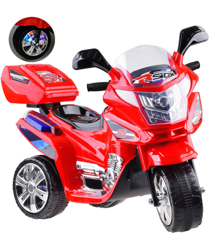 Sportisks motocikls bērniem ar LED apgaismojumu nodrošina, ka mazais vadītājs būs redzams brauciena laikā. Sportisks dizains priecēs katru mazo ātrgaitas transportlīdzekļu cienītāju. Kompaktie izmēri ļauj ērti braukt gan mājās, gan uz celiņiem vai terases. Motocikla riteņi ir aprīkoti ar slāpējošu gumiju, kas samazina vibrācijas un troksni uz nelīdzenas virsmas. Priekšrocības ietver priekšējās, sānu un riteņu LED gaismas, kas rada iespaidīgu vizuālo efektu. Motocikla ērtības ietver vieglu uzsēšanos un nolekšanu, ļaujot bērnam baudīt spēļmantu. Aizmugurē atrodas bagāžnieks un kastīte, kurā novietot svarīgākās lietas.